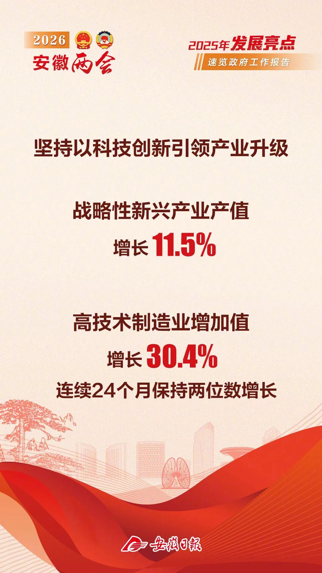 #2026安徽两会# 【#一组海报回顾安徽2025年发展亮点#】2月5日上午,安徽省第十四届人民代表大会第四次会议开幕,省长王清宪作《政府工作报告》。报告回顾了2025年工作。(安徽日报)