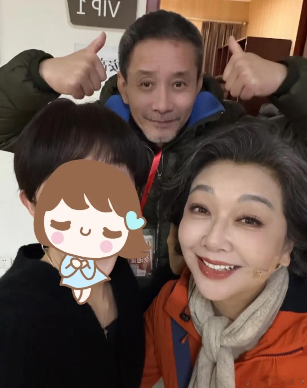 张天爱跟素人合影,胯真的好宽,大宅院似的