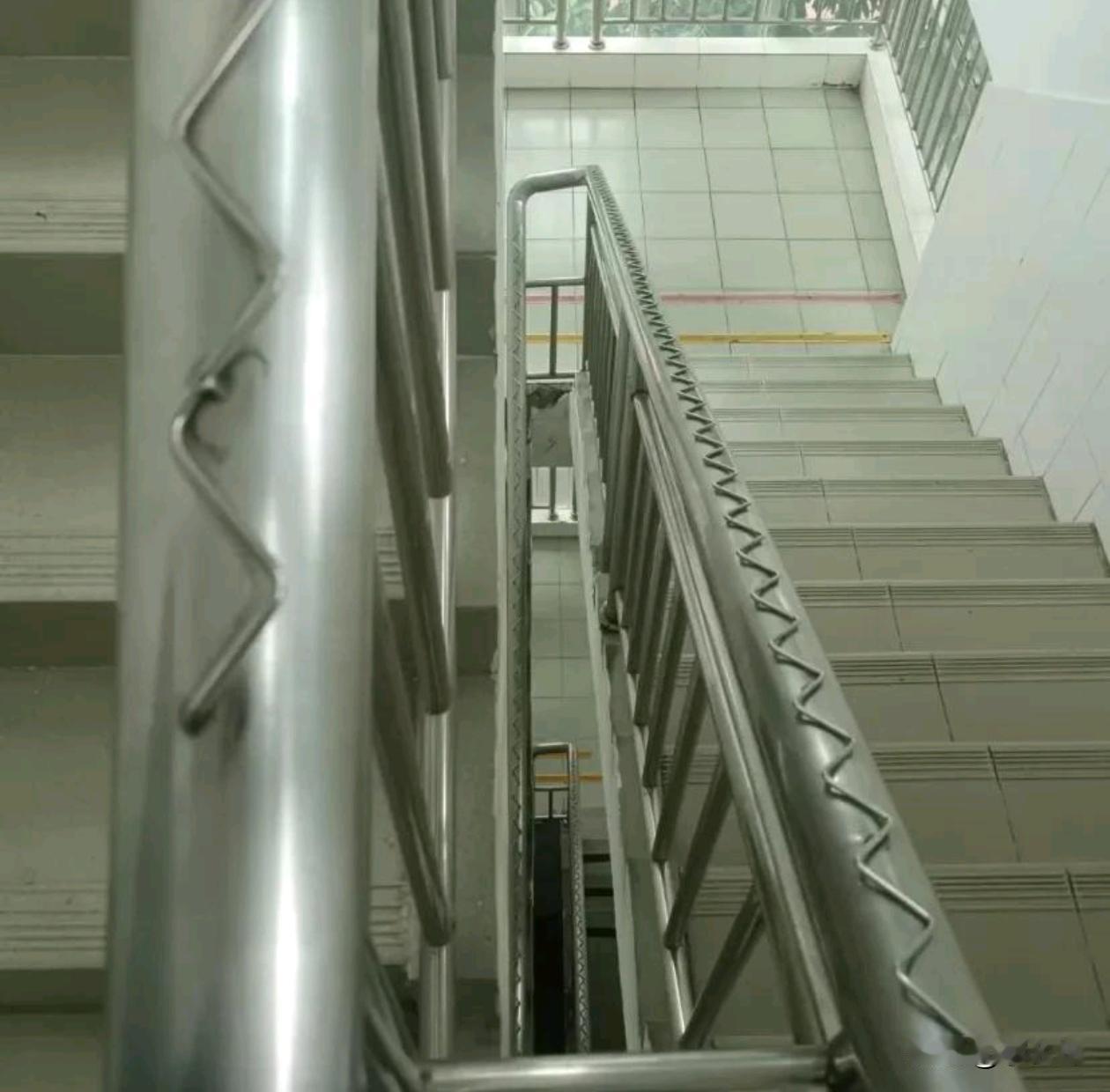 一看就是学校的扶梯,上学的时候都是坐在上面直接往下滑的