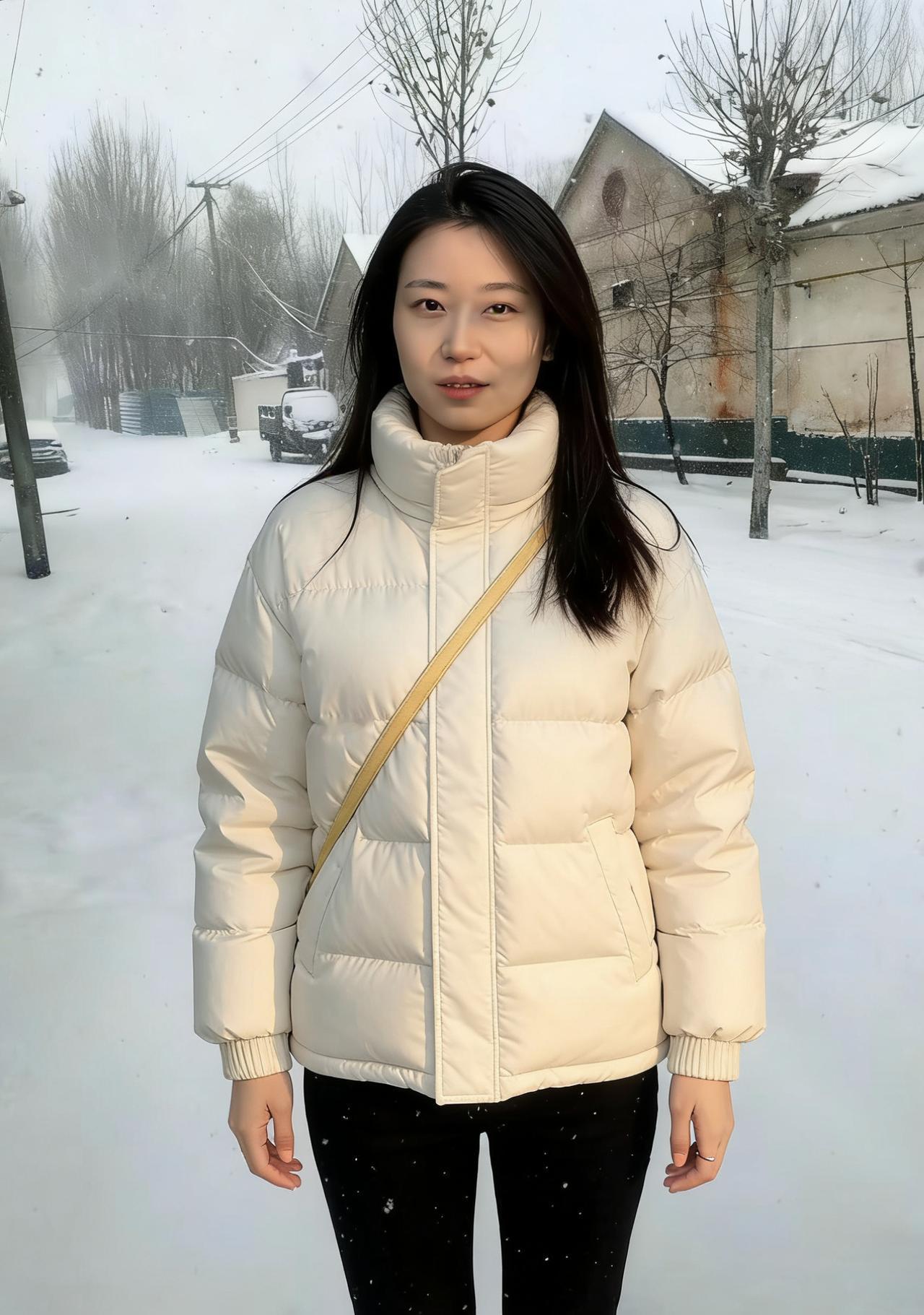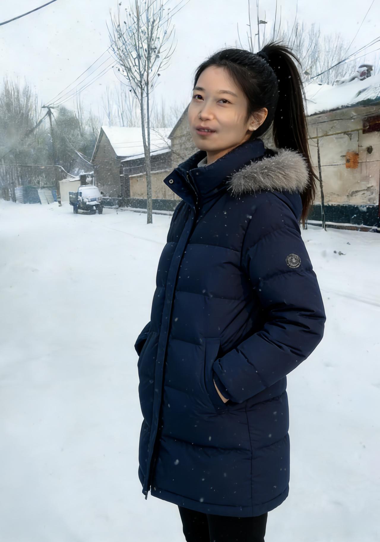 素衣裁玉雪,长发曳秋波。 莫道冬林寂,因伊暖意多。