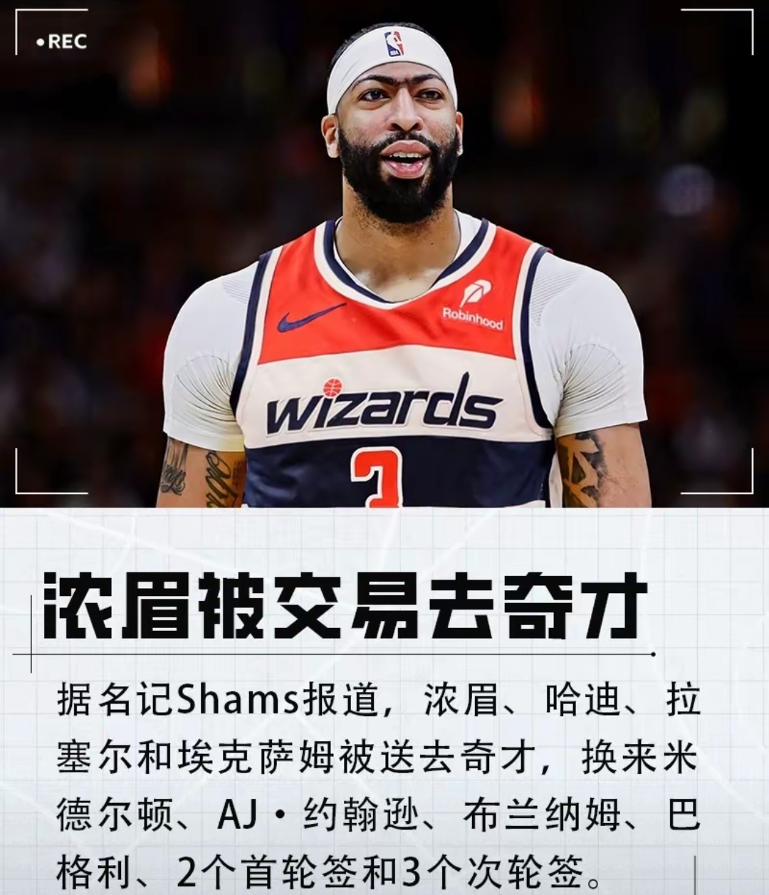 重磅💥浓眉等4人被交易去奇才 换来米德尔顿等4将+2首轮+3次轮男篮篮球
