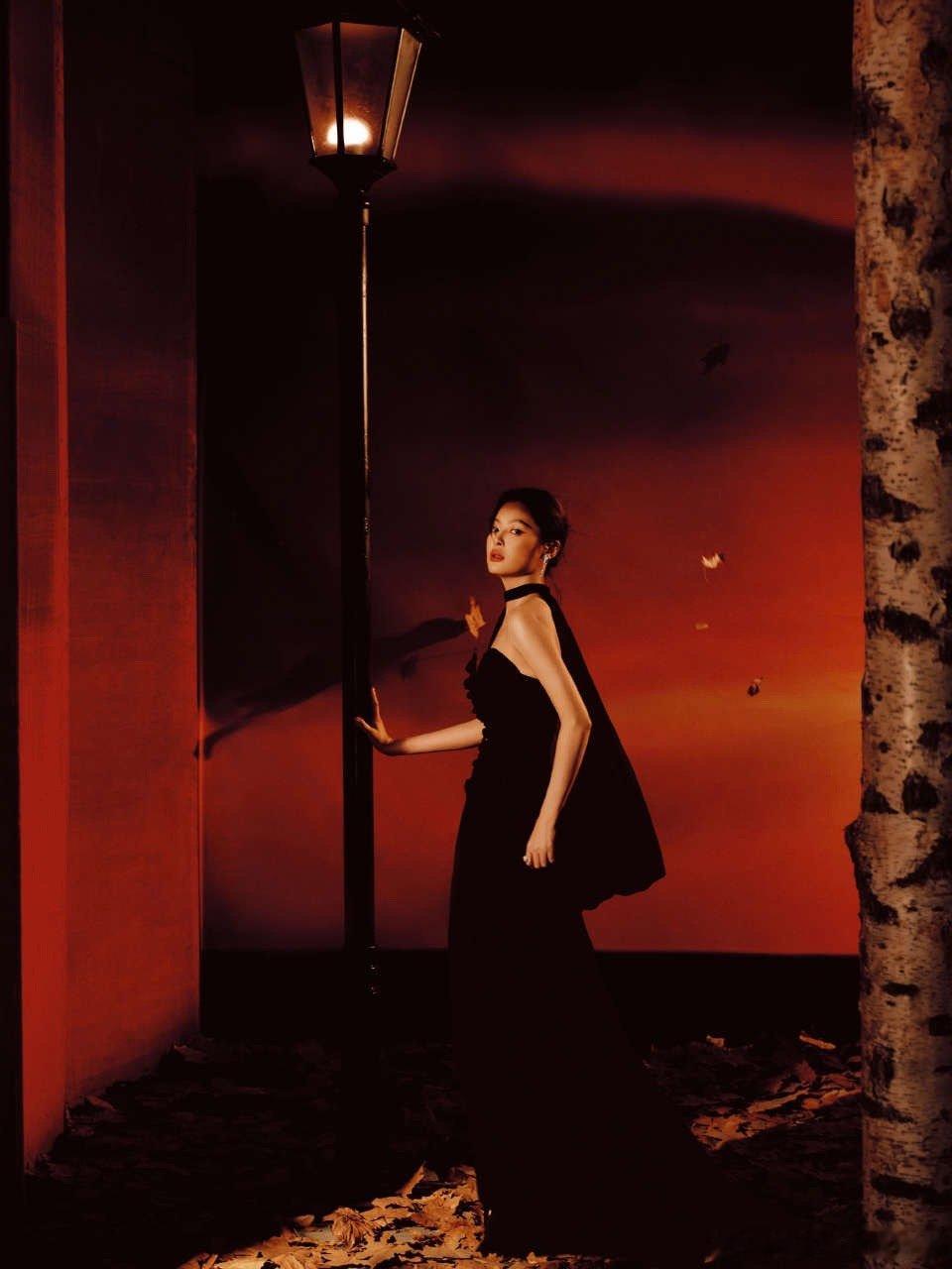 辛芷蕾出发图拍的像五大封面 黑色抹胸高定裹着暗火,锁骨弯成天鹅颈的弧度,漫不经心抬眼的瞬间,像古堡主人推开雕花门,优雅里藏着不容置疑的气场,比杂志硬照还杀。