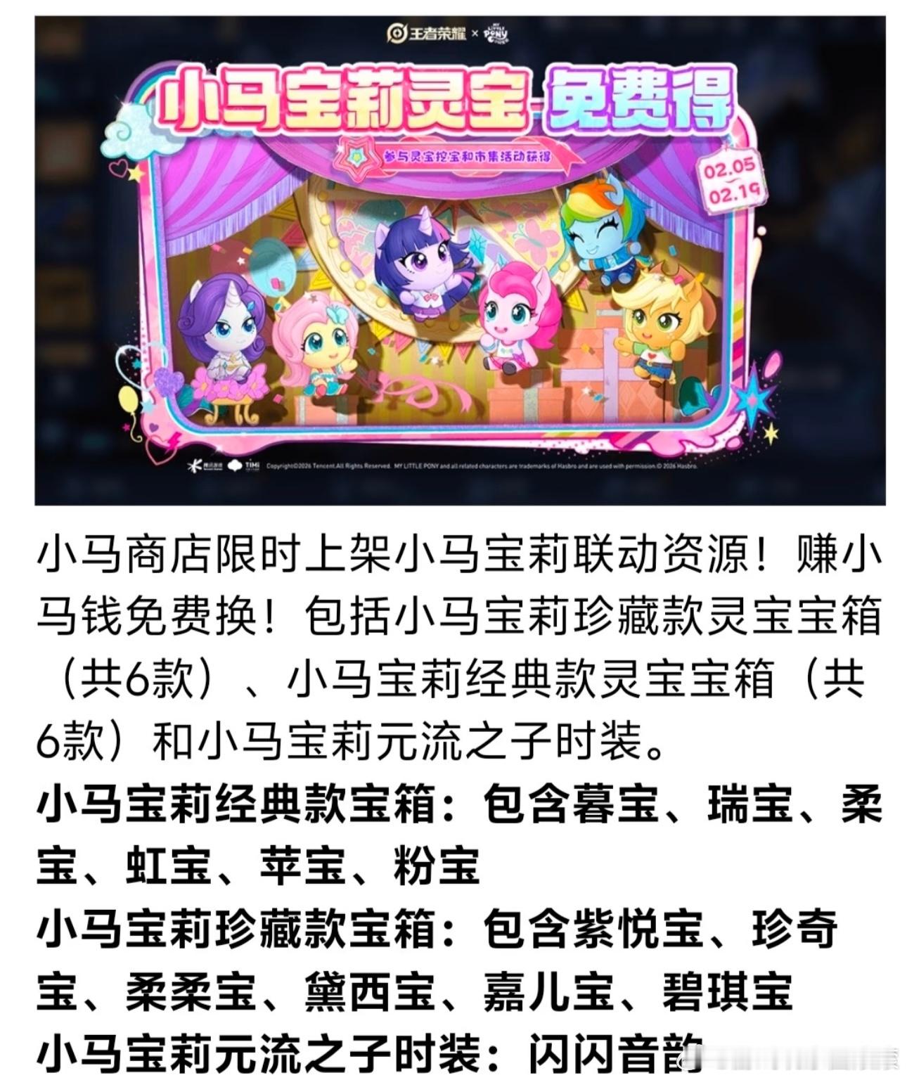 王者马年新春福利有什么王者小马宝莉联动王者荣耀 小马宝莉灵宝可以免费获得!小马糕换小马钱!
