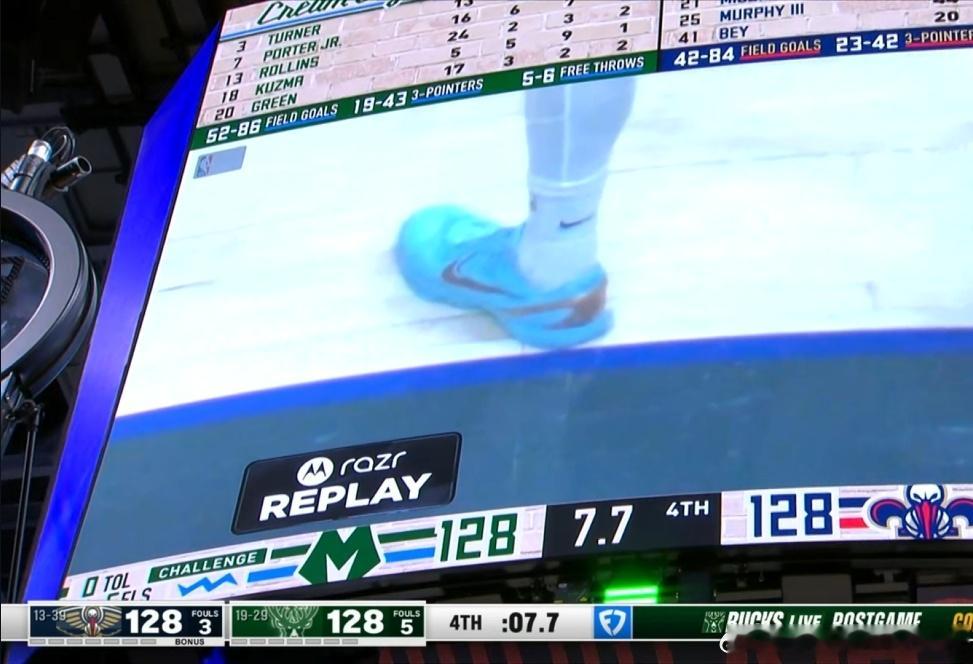 雄鹿主场大屏这个角度,显示好像没踩线啊!!