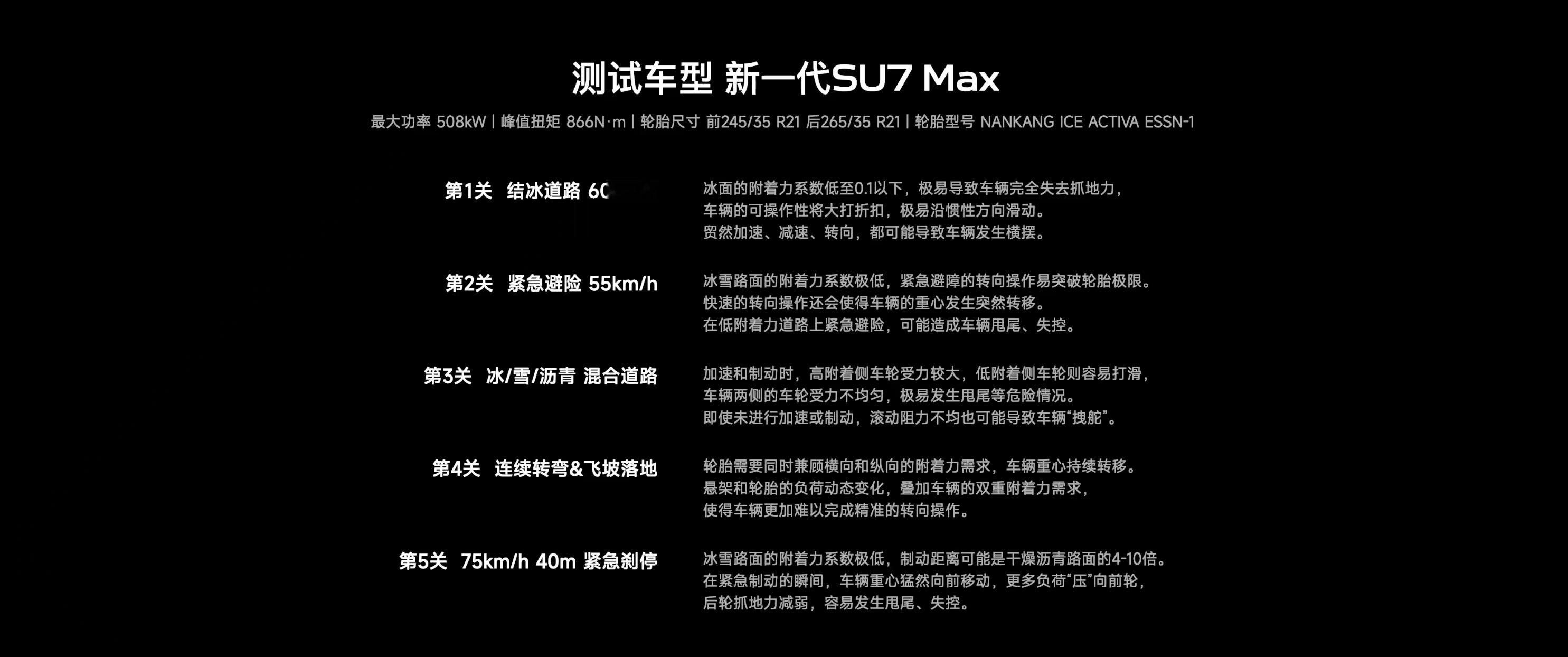 看了新一代小米SU7的极寒场景五大挑战视频,我只想说你可以永远相信相信小米SU7的掌控力,不管是结冰道路、紧急避险,还是冰/雪/沥青 混合道路、75km/h 紧急刹停、连续转弯以及飞坡落地,新一代小米SU7都挑战成功,尤其是面对附着力极低的冰雪路面的时候,小米依然做到了精准而稳定的操控。这靠的是小米汽车的真功夫,其中ESP系统能精细控制,能在你察觉之前就迅速稳住车身,防止打滑;而整套电控响应很快,能够稳稳拿捏低附着力路面,可以说无论在冬季城市常见的“地穿甲”路面,还是雨雪天突如其来的紧急避让,新一代SU7都能够让你在复杂路况下充满信心,日常出行也更加安心可靠。