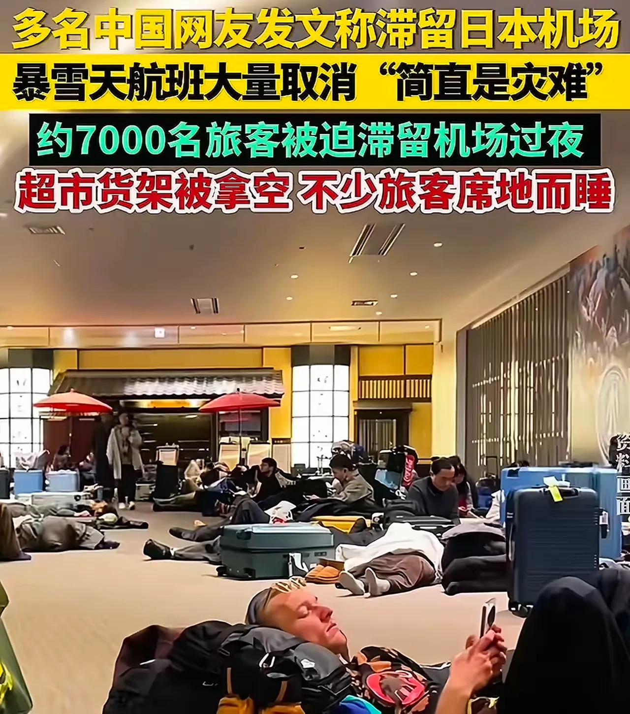 去过日本的盆友都知道,出国和国内的差别太大了,在北海道机场看到一片倒地的同胞,特别讽刺;在国内遇到这种情况,柜台估计早就被拍烂了,地勤早就被骂狗血喷头了。 那天刷到北海道机场滞留的视频,屏幕里,穿着厚羽绒服的人们横七竖八躺在冰冷的地板上,有人把行李箱当枕头,有人裹着毛毯缩成一团,像极了灾难片里的临时避难所。配文里那句“成难民了”,扎得人心里一紧。 有人说这是“素质对比”,日本人守秩序,中国人就爱闹事。这哪是素质问题,分明是“底气”问题。在国内机场延误时,我们拍柜台、骂地勤,不是因为脾气差,是知道背后有一套成熟的应急体系——航司会安排酒店,机场会发餐食,实在不行还有民航局的投诉电话兜底。我们敢发火,是相信“闹一闹能解决问题”。 但在日本的机场,这份底气瞬间消失了。语言不通,法律不熟,连投诉都找不到门路。你对着只会说“斯米马赛”的地勤拍桌子,得到的只有鞠躬和“我们也没办法”。零下十几度的寒夜里,你要么躺在地板上捱到天亮,要么花几倍价格抢一张天价机票。这种时候,“素质”是最没用的东西,活下去才是本能。 更讽刺的是,那些平日里把“日式服务”吹上天的人,此刻集体沉默了。他们忘了日本机场应对暴雪的预案有多敷衍,忘了航司为了省钱不肯安排住宿,更忘了所谓的“秩序”,不过是弱者的无奈妥协。当我们的同胞在异国他乡席地而眠时,没人关心他们有没有热水喝,有没有厚衣服穿,只会跳出来指责“中国人就是爱抱怨”。 我想起去年在上海虹桥机场遇到的延误。凌晨三点,广播里刚说航班取消,机场大巴就已经在门口待命,酒店的热粥和毛毯直接送到登机口。那一刻我突然明白,国内的“吵闹”,本质上是消费者对权益的争取;而日本的“安静”,不过是弱势群体的逆来顺受。我们总羡慕国外的“文明”,却忘了文明的前提是有保障的生活。 当然,这不是说国内的机场就完美无缺。我们的服务还有很多可以改进的地方,但至少在遇到问题时,我们知道有人会站出来解决。而在北海道的寒夜里,那些倒地的同胞用身体告诉我们:没有国家撑腰的“高素质”,不过是自欺欺人的笑话。 各位读者你们怎么看?欢迎在评论区讨论。