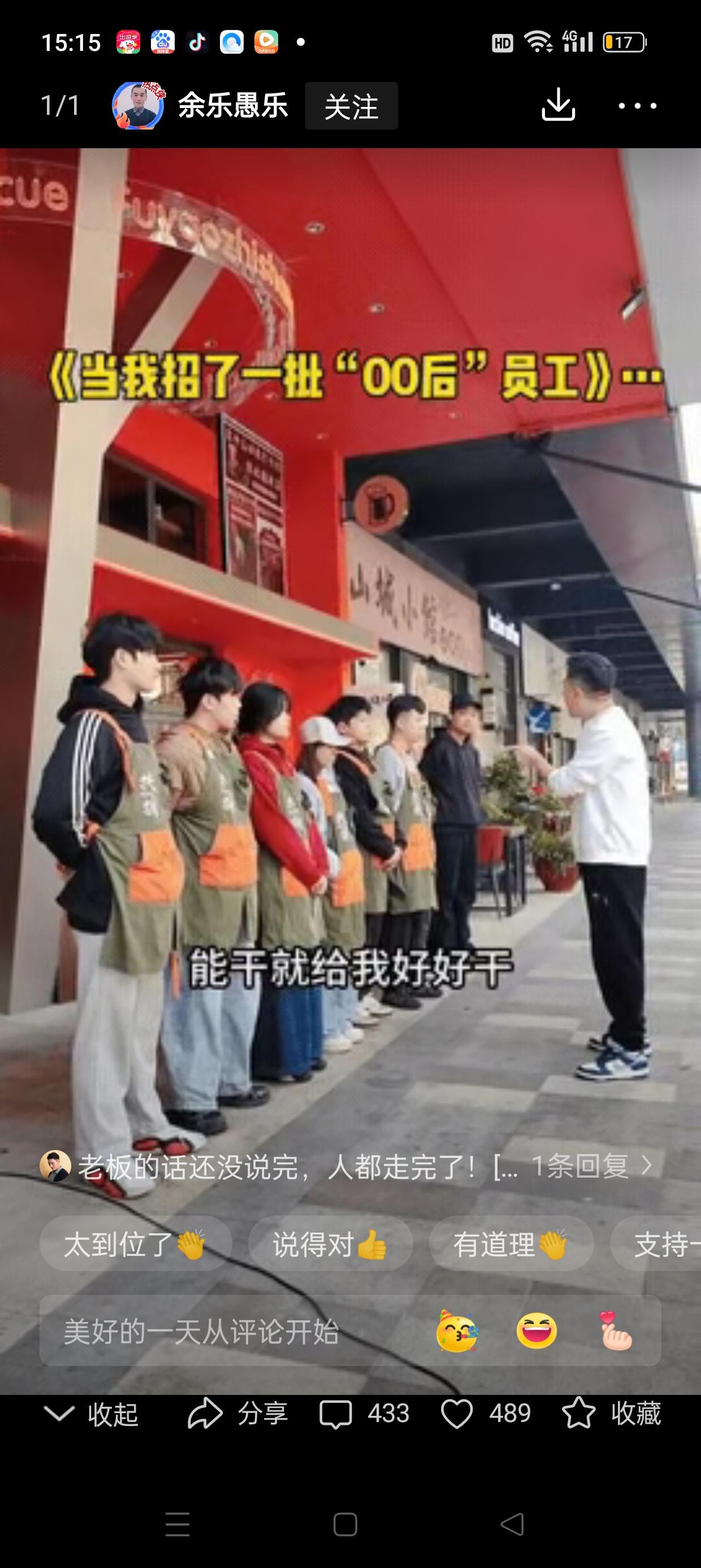 标题:“店铺生死线:一个饭馆老板对00后员工的震撼训话” 在繁忙的城市角落,有一家不起眼的小饭馆,老板性格刚烈、直率,却也充满对未来的担忧。一天清晨,老板在员工面前发出了令人震惊的一番话,这不仅仅是一段简单的训话,更像是一场关于生存、责任与压力的公开宣言。让我们走进这家小店,感受老板那句“你们也知道,现在工作不好找”的背后,隐藏着怎样的心声与现实。 老板的声音低沉而有力,语气中带着一丝不容置疑的严厉。“我昨天开会怎么说的?”这句话像一把利剑,直指员工的责任心。对于00后员工来说,或许这是一种压力的传递,但也提醒他们,岗位不是随意的玩乐场,而是需要付出努力的战场。老板希望员工记住会议中的教导,明白每一次指示都关系到店铺的未来。 接着,老板语气变得更加直白:“这个店离开谁都行。”这句话令人震惊,似乎在宣告一种极端的岗位不稳定。或许是现实的无奈,也可能是对员工责任感的提醒。在这样的环境下,每个人都像是站在悬崖边,随时可能被推下去。这种“随意离开”的背后,是老板对员工能力的期待,也是一种无声的考验。 老板语气中带着一丝忧虑:“你们也知道,现在工作不好找。”这句话揭示了当前就业市场的严峻现实。对于00后员工来说,可能是刚步入社会,面对压力与迷茫,但老板用这句话提醒他们,要懂得珍惜眼前的岗位,不要轻易放弃。就业难题成为了这场“战役”的背景,也让员工意识到责任的重大。 ”——能力与责任的双重考验 最令人震惊的是老板的最后一句话:“能干就给我好好干,不能干就滚蛋。”这是一句极端但直白的“金句”。老板用最简单的语言表达了对员工能力的要求,也传递出一种“留得住就努力,留不住就走”的态度。在压力面前,员工的表现成为关键。老板的这番话,既是激励,也是警示:在这个岗位上,没有退路,只有拼搏。 这段训话看似粗暴,但背后隐藏着老板对员工的期望与担忧。在竞争激烈的餐饮行业,老板希望每一位员工都能拼搏奋进,不怕困难。与此同时,这也反映出当代年轻人在职场中的迷茫与压力。老板的强硬,或许是一种无奈的表达,也是一种激励的方式。 这场训话虽然激烈,但也提醒我们,职场如战场,责任与压力并存。对于00后员工来说,或许需要在这样的“高压锅”中找到自己的位置,学会责任感与担当。而对于老板来说,也许需要在强硬中加入理解与关怀,让团队在压力中成长,在挑战中前行。 这家小饭馆的故事,折射出无数小企业的真实写照。它告诉我们:在竞争激烈的时代,只有不断努力、勇于担当,才能在风雨中站稳脚跟,迎接属于自己的曙光。 餐厅态度