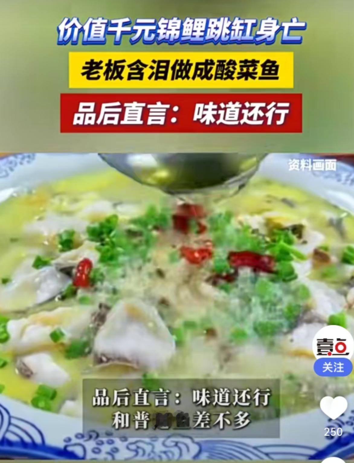 近日,河南南阳的一家鱼店发生了一件让人哭笑不得却又引人深思的事儿。一条身价不菲、价值千元的锦鲤,因为意外“跳缸”死亡,没被庄重埋葬,也没被做成标本,反而在店主的手里,变成了一锅热气腾腾的酸菜鱼。当这锅鱼端上桌,店主夹起一块送进嘴里,给出的评价极其务实:口感跟普通鱼没两样。这句话一出,瞬间在网上炸开了锅,大家手里的瓜都差点吓掉了。 要知道,锦鲤在咱们国人心里,那可不是普通的食材。它是吉祥的象征,是好运的代名词,很多人家里养锦鲤,那是当“镇宅神兽”供着的。一条卖到上千元,看的不仅仅是那身肉,更是它身上寄托的那些美好愿望。如今,这位南阳老板的操作,直接把“吉祥物”拉下了神坛,扔进了酸菜坛子里。四川网友那句评论简直神来之笔:“老板的泪水从嘴里流了出来。”看似调侃,实则道尽了那种不得不接受的无奈与心疼。 咱们先抛开情感滤镜,单从生物学角度看,锦鲤到底能不能吃?答案是肯定的。锦鲤其实就是鲤鱼的变种,除了基因突变带来的花色和体态不同,骨肉构造和普通鲫鱼、鲤鱼并无二致。北京网友“三眼纹”一针见血地指出:“这种鱼根本不好吃。”确实,为了观赏价值,锦鲤往往是长期人工培育,肉质肌间刺多,口感偏柴,远不如肉食性鱼类或专门养殖的食用鱼细腻。那位店主亲口验证“口感无异”,估计也是为了给自己找点心理安慰,毕竟这可是上千块钱买来的“寂寞”。 这就引出了一个更有趣的社会心理现象:为什么大家对这件事反应这么大?江苏网友惊讶道:“鲤鱼竟然也能吃。”这不仅仅是知识盲区的问题,更是文化禁忌的碰撞。在大多数人的认知里,锦鲤属于“宠物”范畴,而酸菜鱼属于“食材”范畴,这两者中间隔着一道厚厚的墙。一旦这道墙被推倒,大家心里那种对美好事物的幻灭感就油然而生。仿佛那个代表着好运的符号,被一口口嚼碎了。 不过,咱们换个角度想,这也许是一种最朴素、最接地气的“告别仪式”。现在养宠物的人越来越多,宠物殡葬产业也跟着火了起来。从几百块的上千块,有人给宠物办葬礼,有人把宠物的毛发做成饰品,甚至还有人把旧物改造,把缝纫机改成茶桌,只为留住那份念想。这些仪式感固然隆重,但也需要不少的经济成本和情感投入。相比之下,这位南阳鱼店老板的选择,显得格外“硬核”。 既然鱼已经没了,价值千元的肉体如果直接扔进垃圾桶,或者挖个坑埋了,在务实的生意人眼里,那叫“资源浪费”。与其让它在土里腐烂,不如让它变成肚子里的营养。这种“延续存在”的方式,虽然听起来有点粗鲁,甚至被部分网友认为“对吉祥物不敬”,但未尝不是一种生命的循环。在那一刻,锦鲤不再是高高在上的图腾,它回归了生物的本质,完成了作为一条鱼最后的使命。 当然,这事咱们看看就好,千万别盲目跟风。如果您家里也养了锦鲤,哪怕它真的寿终正寝了,也不建议您立马起锅烧油。一方面,观赏鱼在养殖过程中,为了保持色泽和健康,可能会使用一些非食品级的药物或添加剂,体内残留的风险不容忽视;另一方面,心理上那一关,恐怕大多数人过不去。吃下去的每一口,可能想起的不是美味,而是它曾经摆尾时的样子。 这起“锦鲤变酸菜鱼”的闹剧,其实折射出的是我们在面对物质损失时的一种自我和解。当价值千元的希望破灭,老板用一顿饭终结了这场遗憾,把损失转化为了热量。虽然听起来有点心酸,但也透着一股子生活该有的韧性。毕竟,日子还得过,饭还得吃。有时候,吞下生活的苦,或许真的能品出一点别的味道,哪怕那味道,只是一盘普通的、带着点酸的鱼肉。 以上内容仅供参考和借鉴