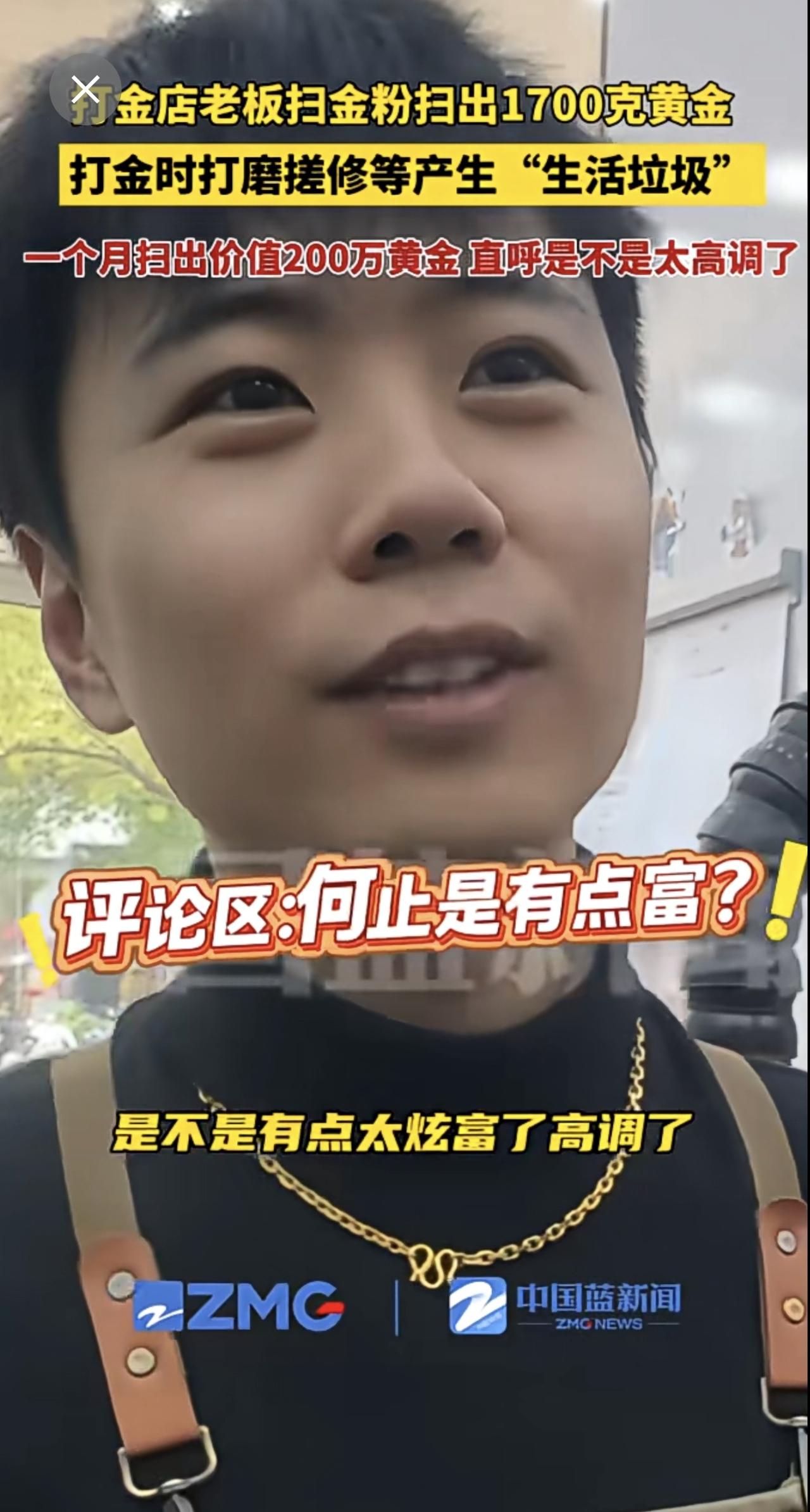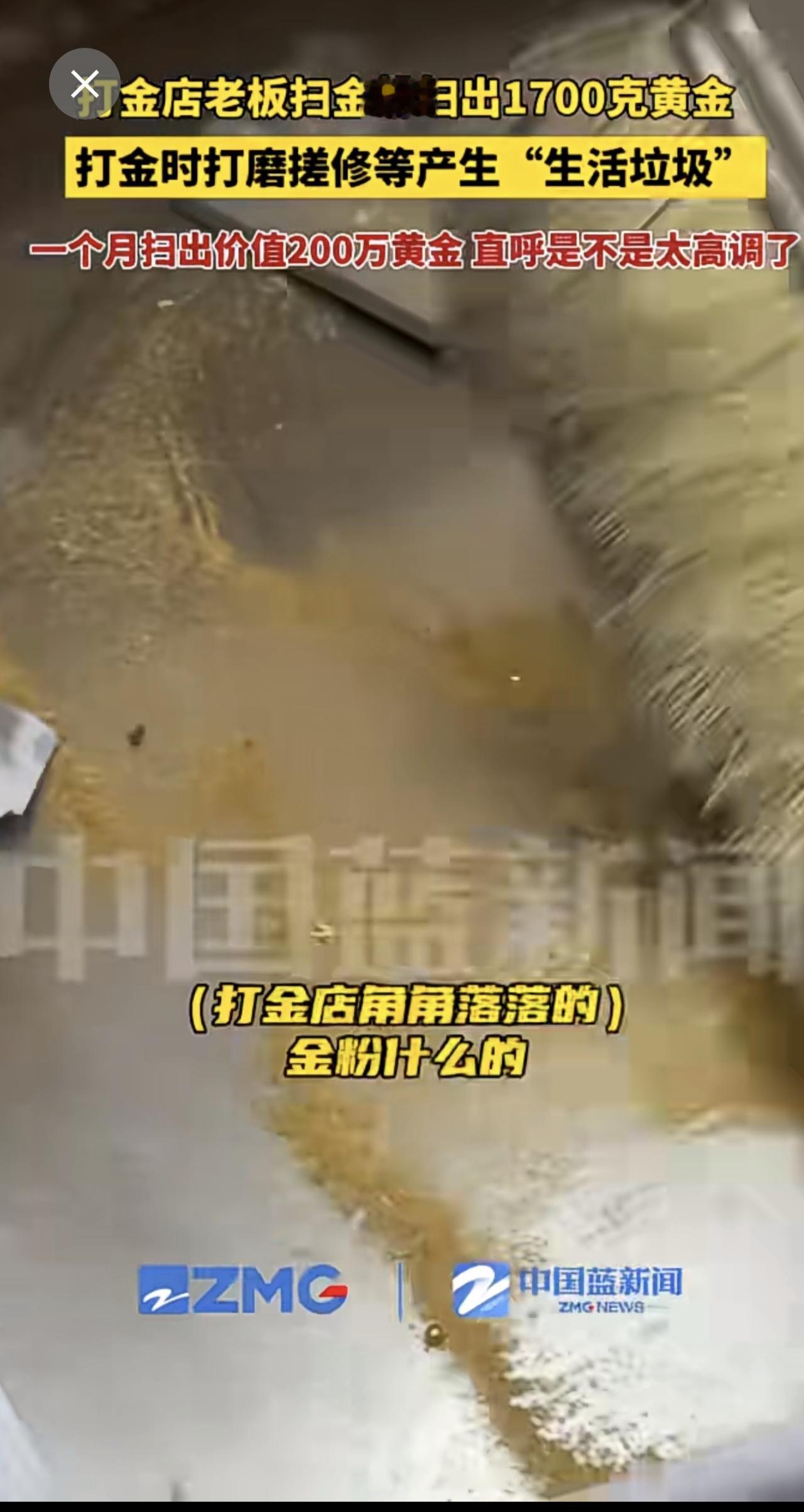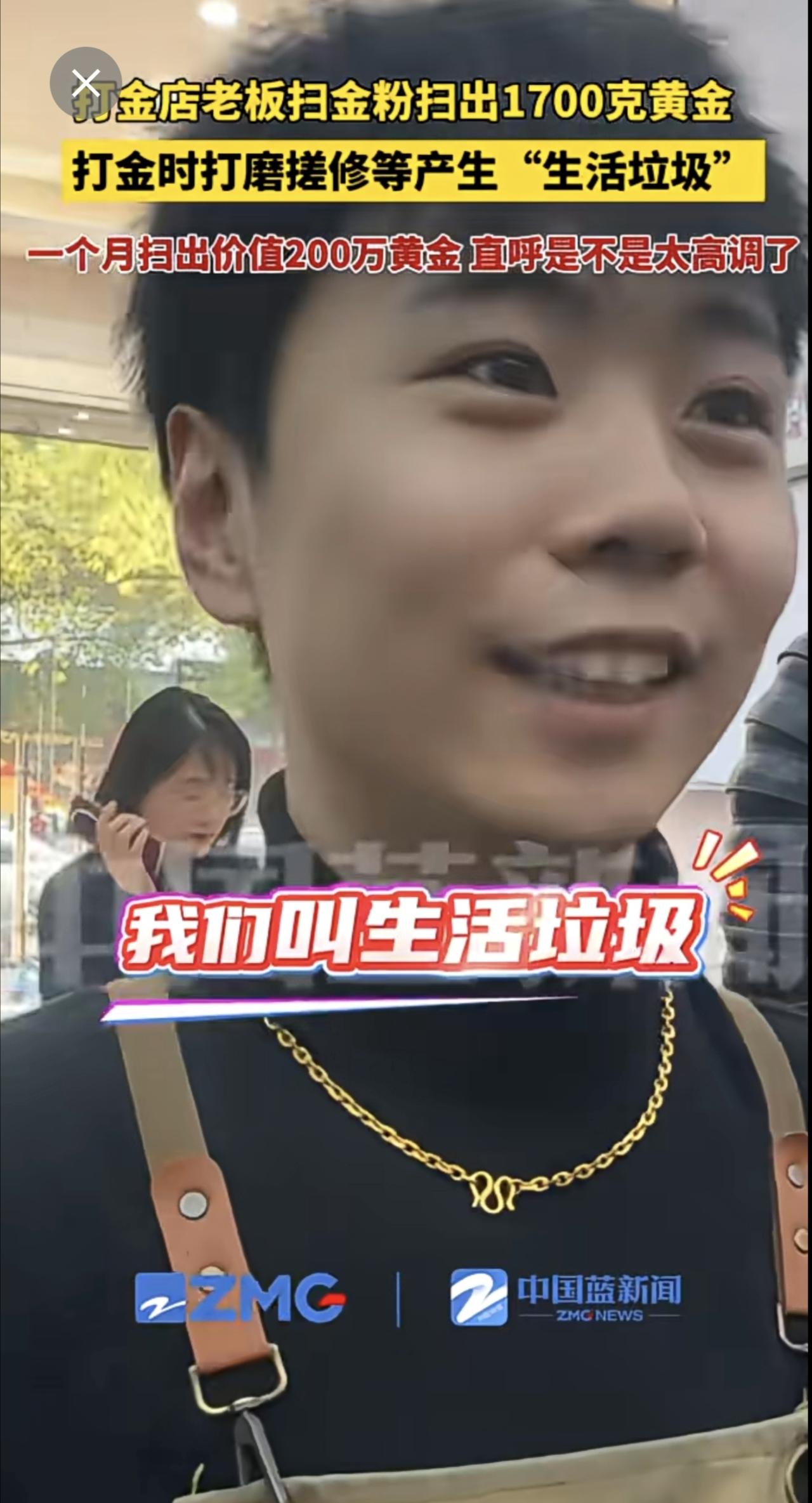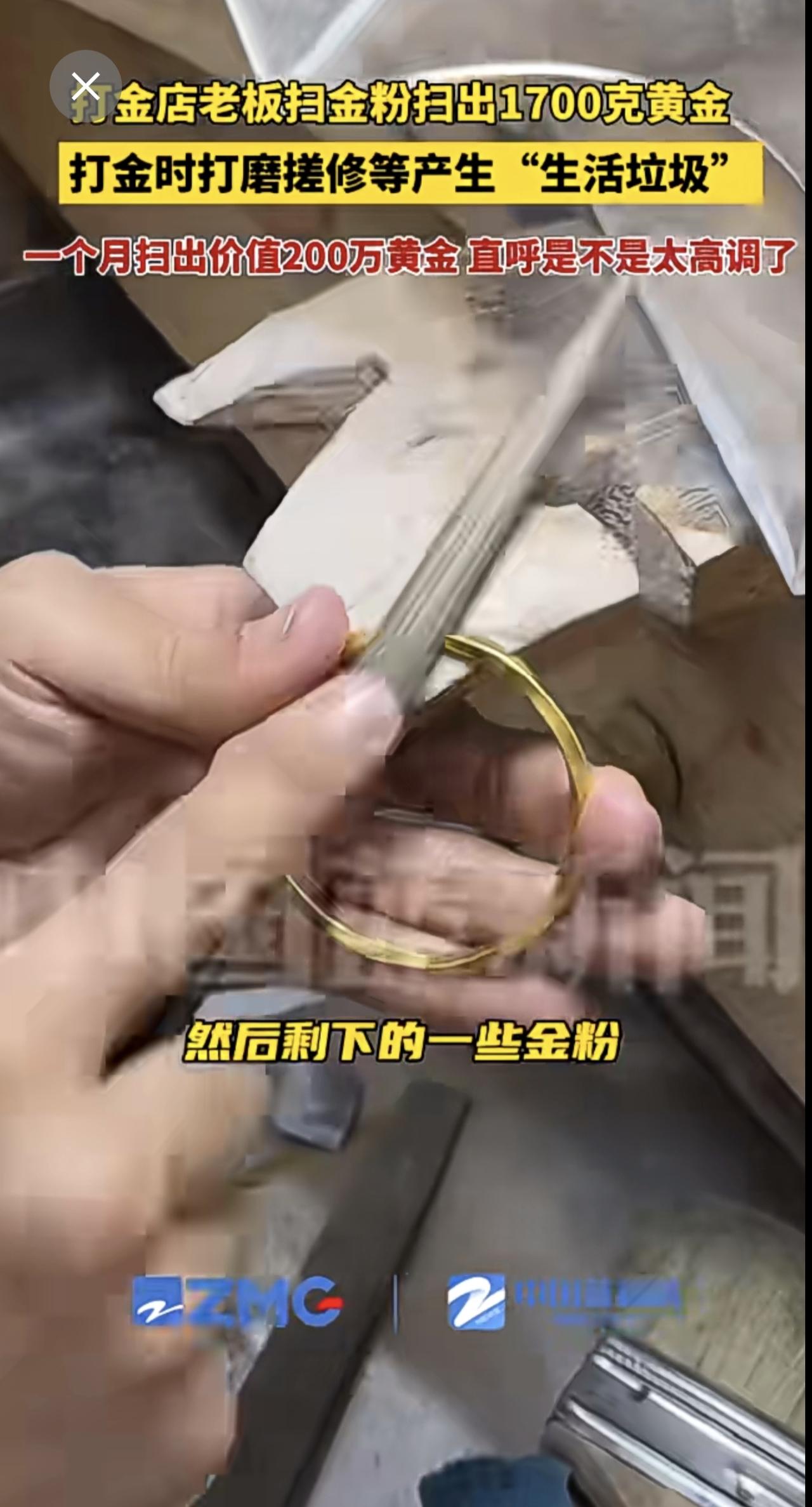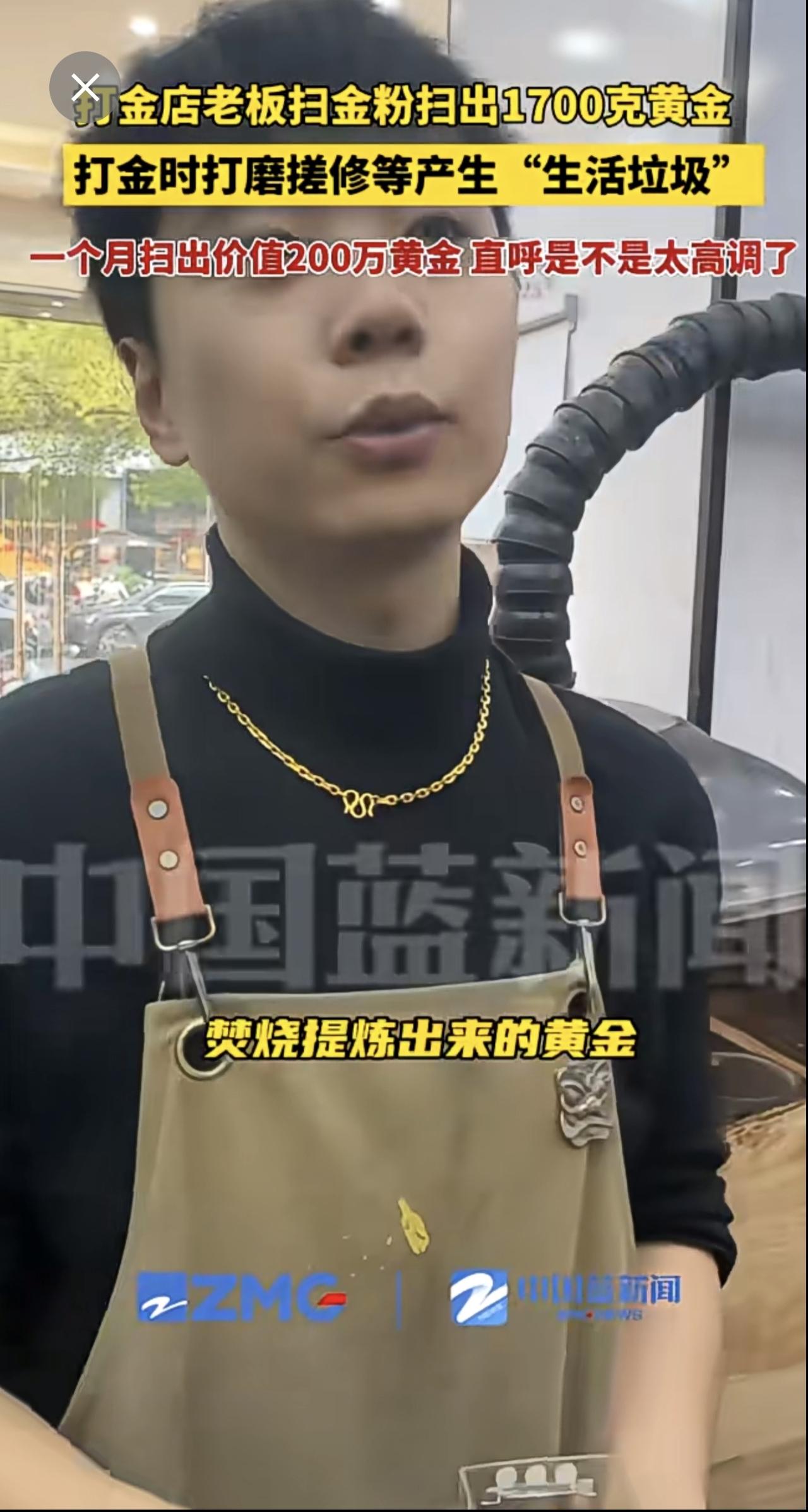 打金店生意火爆,杭州打金店老板告诉中国蓝新闻记者,店内一个月扫出1700克金粉,就是平时打金时打磨搓修产生的“生活垃圾”。熔成金条价值200万。老板说:是不是有点太高调了?