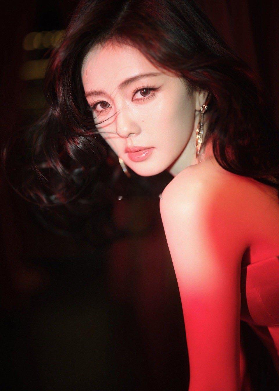 是谁的港风DNA动了!白鹿这套红裙造型来自Ulyana Sergeenko高定抹胸红裙,丝绒拼接闪耀亮片,鱼尾裙摆摇曳出绝代风华。