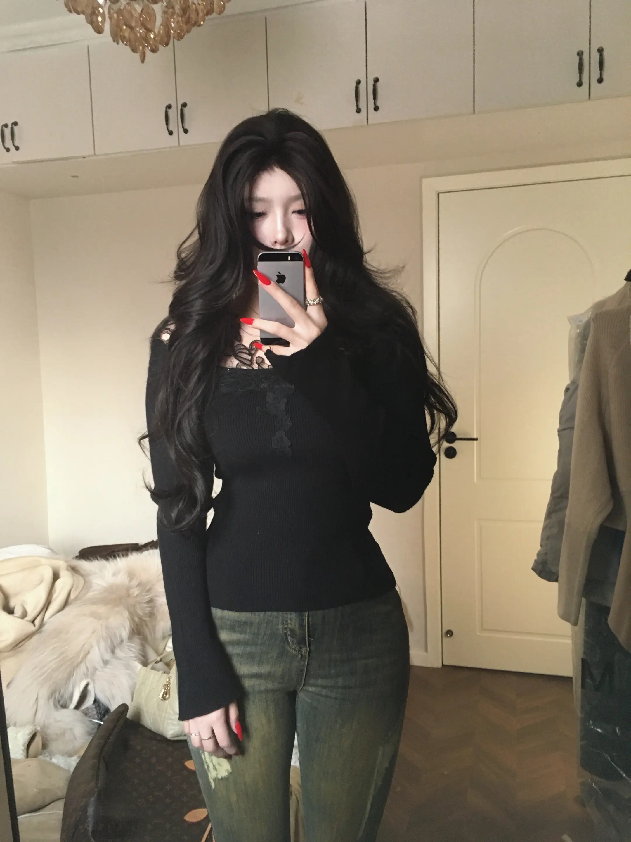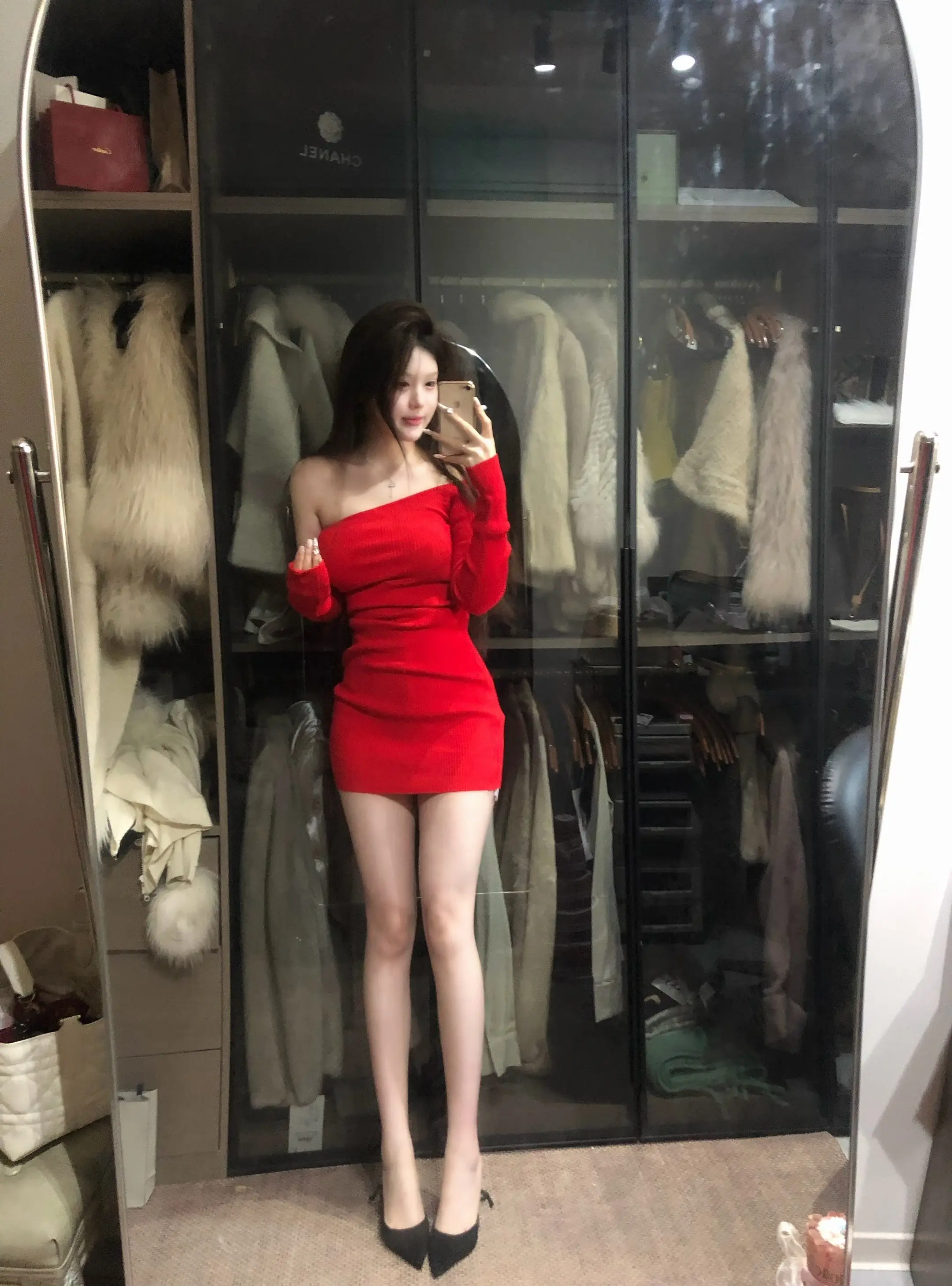 美腿辣妹,黑丝配黑色包臀连衣裙配红底黑高跟配披肩长卷黑发,简直绝了!