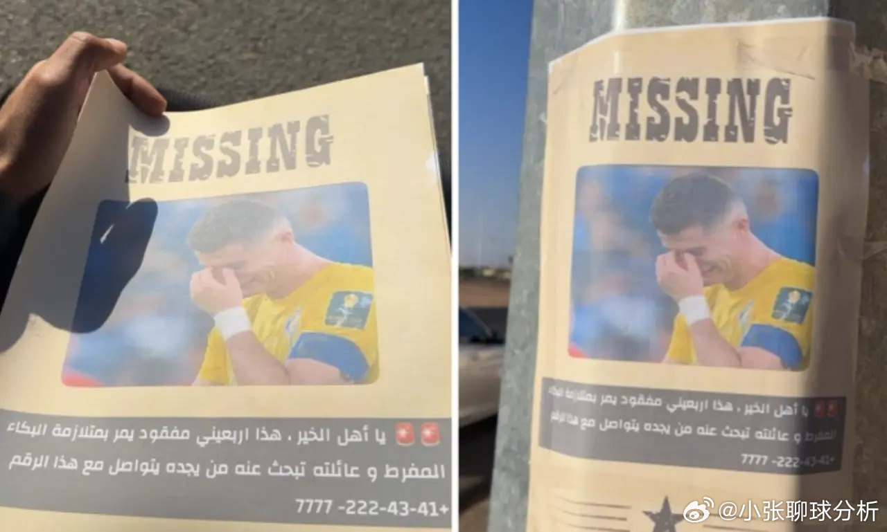 新月球迷张贴寻人启事!嘲讽C罗:失踪人口,又哭又闹,看到报警