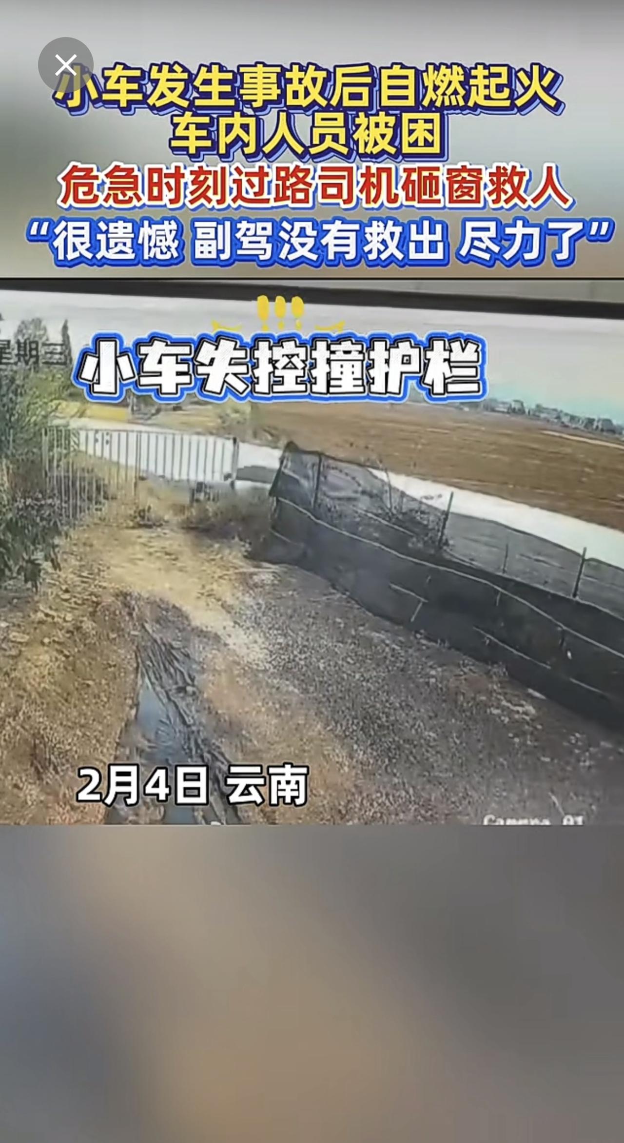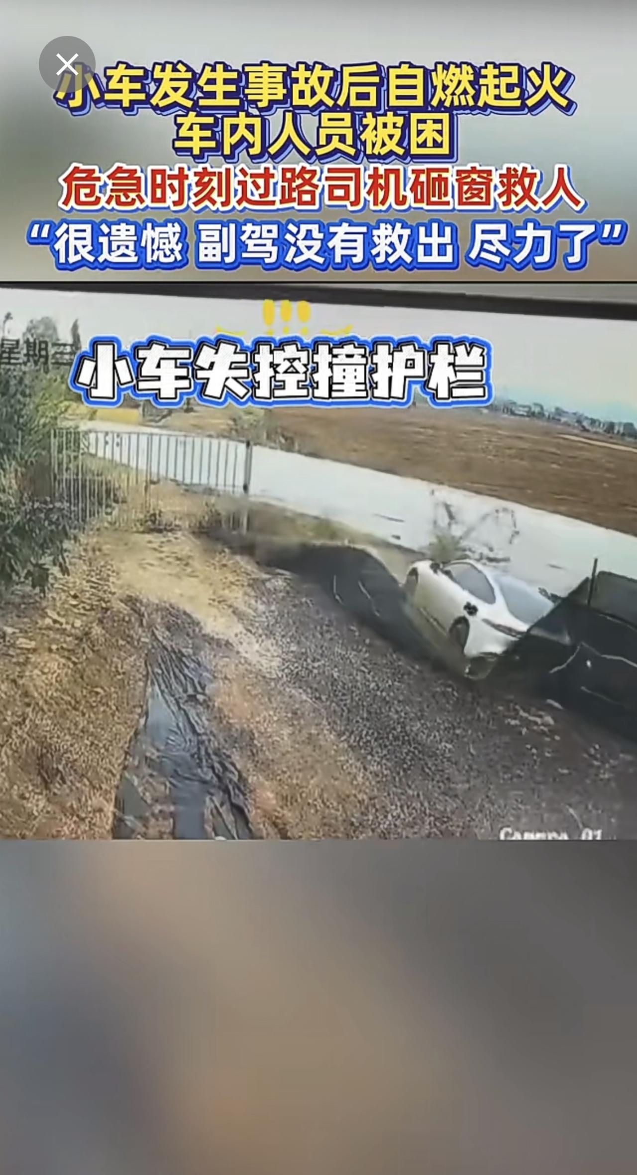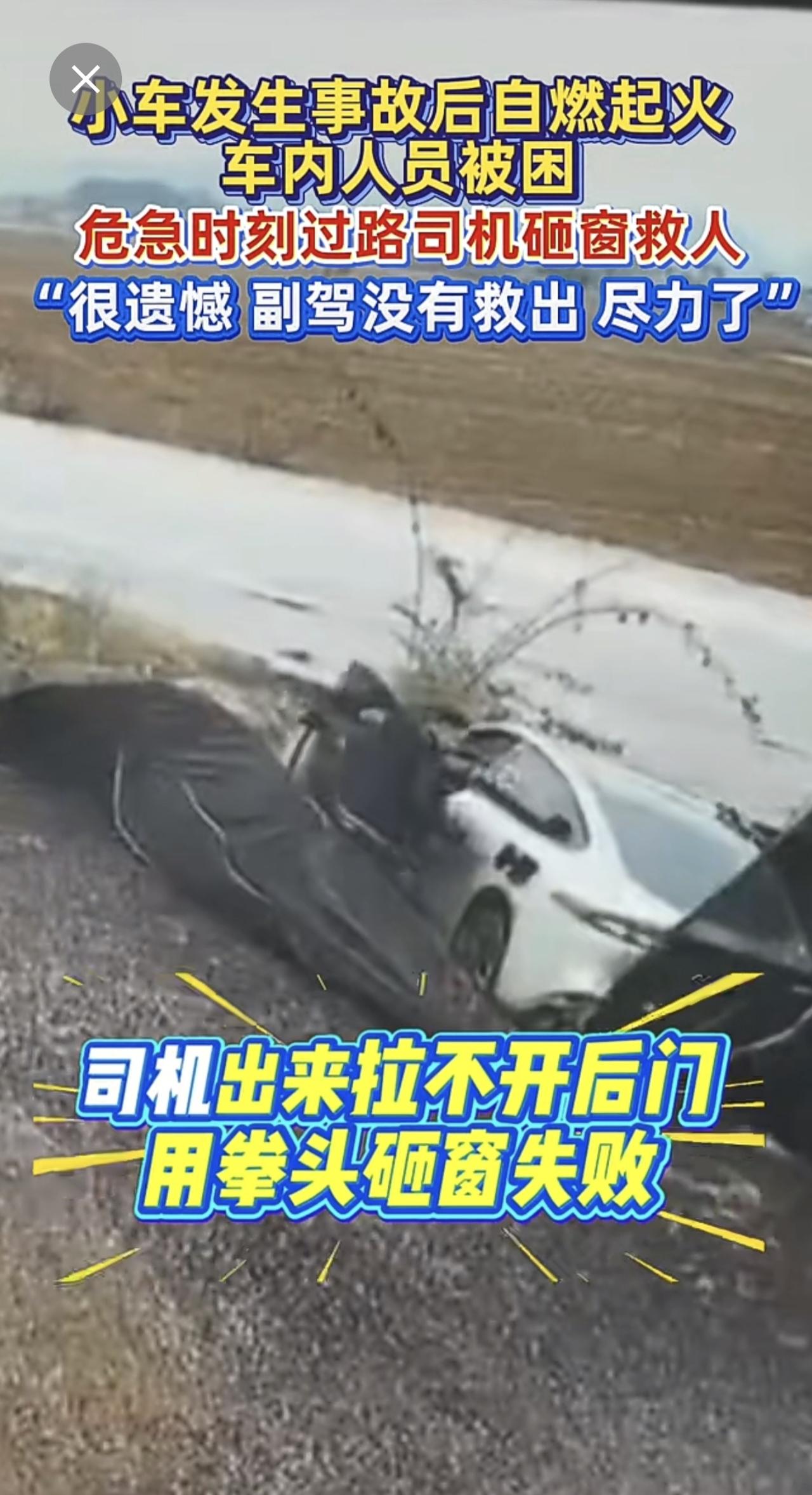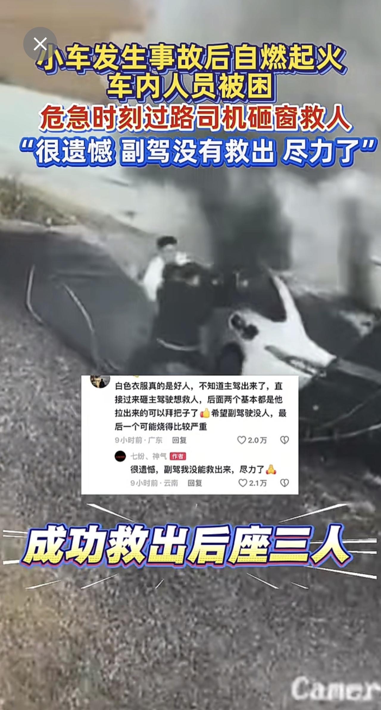 小车失控起火,路过司机英勇砸窗救人[赞]