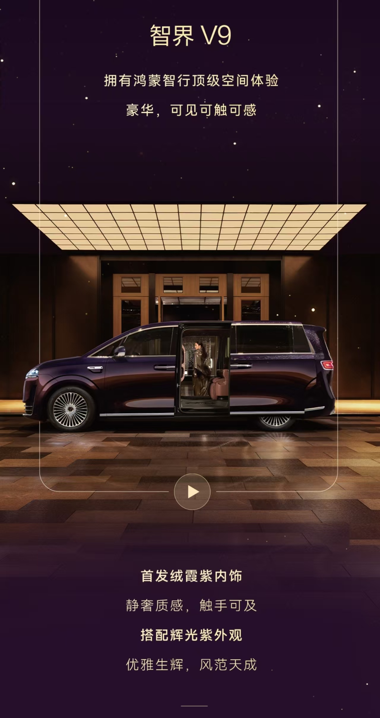 余承东官宣智界V9绒霞紫内饰 整一台,做商务接待,岂不是非常适合?