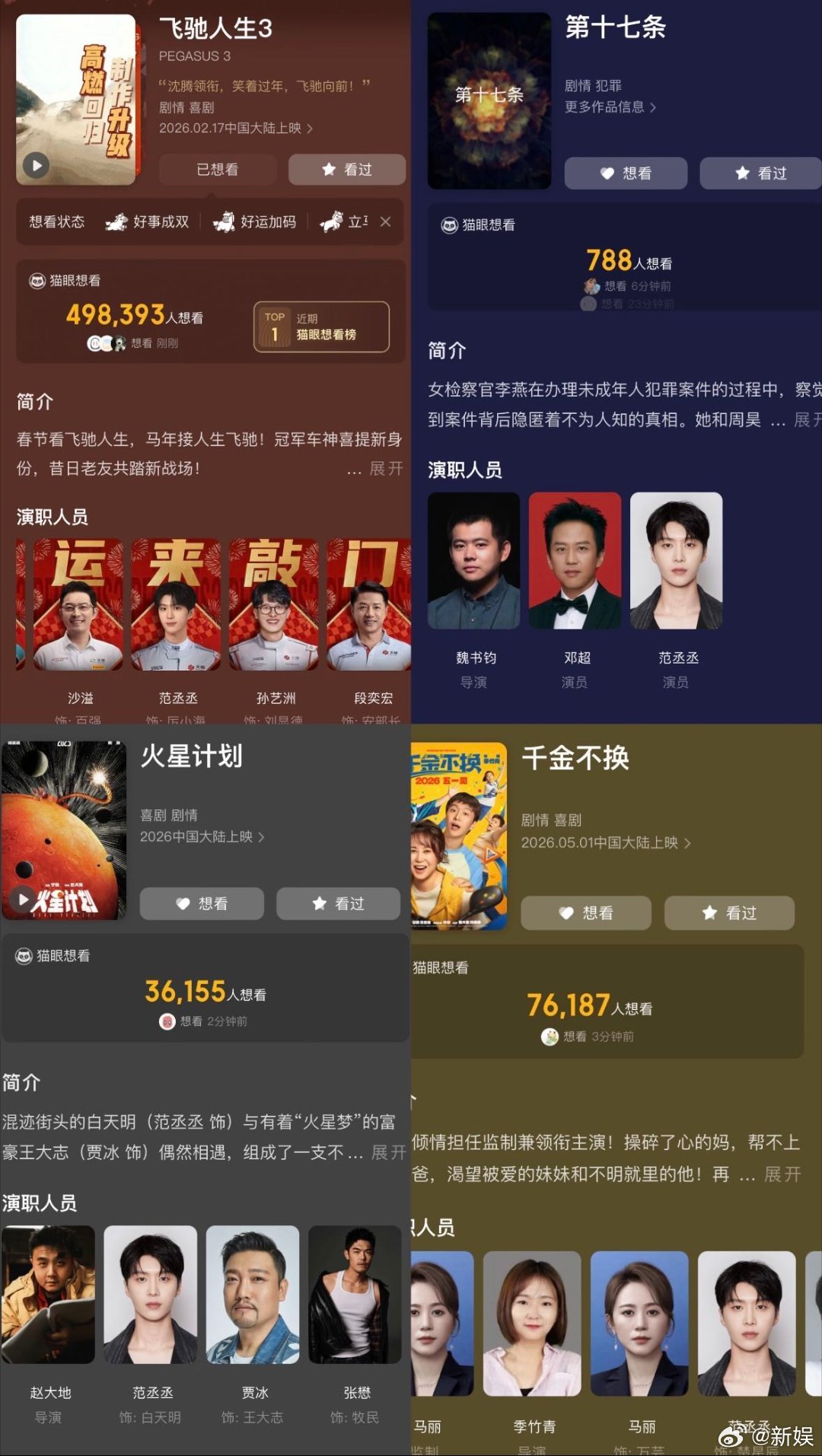 官宣的四部电影各种题材都有涉及到,光看简介就忍不住让人搓手期待;转头又参加了春晚的彩排,想想他在舞台上又唱又跳的样子,怕是要承包观众的尖叫声~别人过年忙着走亲戚、抢红包,范丞丞倒好,舞台影视全开花!看他路透里那股子精气神,愣是把忙碌过成了“升级打怪”现场!