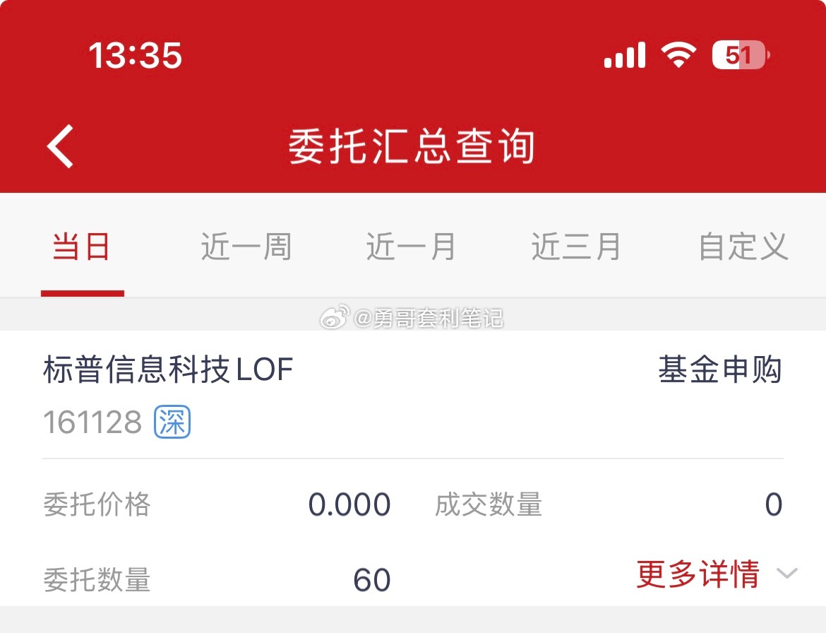 今日看盘套利 一只基金 ,标普信息科技溢价率3%+,限额10,无利可套了,有几只折价的,看好后市可以仓内申购,或持有七天后赎回套利。仅供参考,抄作业有风险,套利需谨慎,所有申购盘中跳水,溢价率抹平或大幅缩小将撤单!实盘贴图仅作为个人记录之用,不构成任何投资建议及操作指引!盈亏自负,切勿盲目跟风!