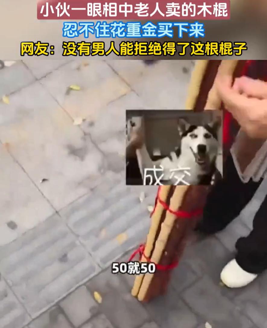 男人至死是少年!陕西,男子路上看到一位大妈在卖木棍,木棍就像是在路边捡来的,在别人看来再平常不过,可男子却一眼相中,甚至不惜花50块钱买下来,网友:没有男人能拒绝得了这根棍子 当天,男子走在路上,看到大妈在路边卖木棍,男子一眼就相中了,他走上前,把那根棍子拿在手里掂了掂,又仔细看了看。棍身笔直,粗细也趁手。他问了句,这棍子以后会裂吗?大妈很肯定,说不会。他又问多少钱,大妈答,五十,不讲价 男子想要再便宜点,可大妈不干,男子到底还是没忍住,直接花50块钱把棍子买了下来,一路上还不停地玩耍 对此,有网友说:在男人眼中,那是一根棍吗?不是!那是丐帮的镇帮之宝,打狗棍,那是李白的剑,林冲的枪,还是大圣的金箍棒! 仔细想想确实如此,男人对一根直溜棍子的喜欢,好像是与生俱来的。这种喜欢很单纯,不图它能做什么实际用处,就是拿着顺手,看着舒服,心里高兴。它像是一个开关,轻轻一碰,就打开了某个通往童年、通往江湖、通往无边想象的通道 你看那些爸爸们,带孩子去公园,捡到一根好棍子,往往比孩子玩得还投入。路边施工剩下的一截水管,院子里修剪下来的一段笔直树枝,都可能被他们如获至宝地收起来。这跟年龄、身份都没关系,那只是一种最质朴的、对手里有一件“称手家伙”的快乐 所以,别笑话那个花五十块钱买根木棍的男人。他买的不是木头,是一瞬间的快乐,是一段私人的江湖梦,是那个藏在成年躯壳里,从未走远的少年心气
