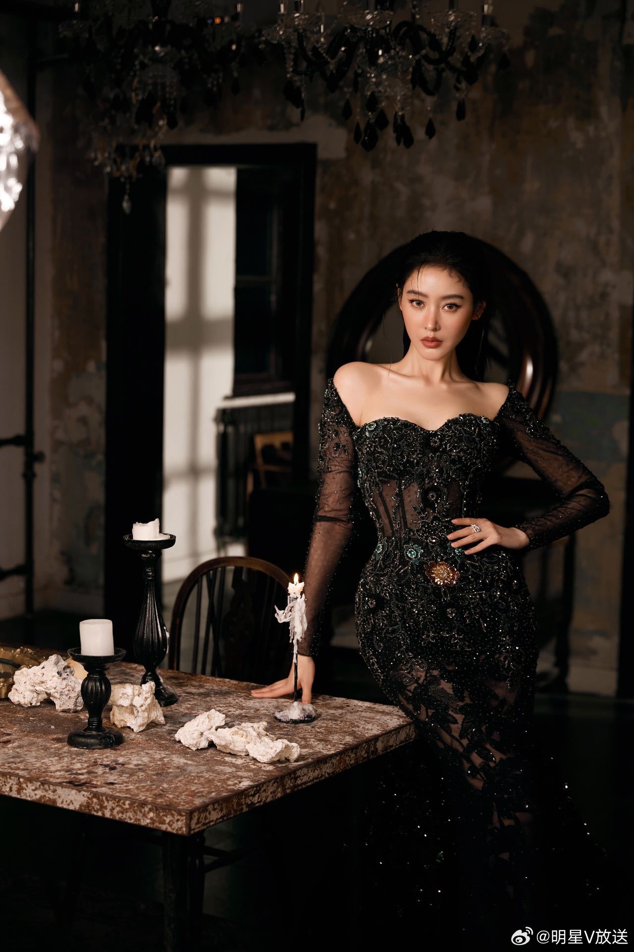 张天爱红唇黑裙造型女王来的 张天爱出发图来了!身穿黑色闪钻礼裙,修身剪裁凸显出她的优雅身姿。裙摆上的细碎钻饰随步伐闪烁,犹如夜幕中的星辰般璀璨。利落背头与妆容的组合,更添一份霸气与魅力,使她宛如暗夜女王,气场十足,期待她的精彩表现!