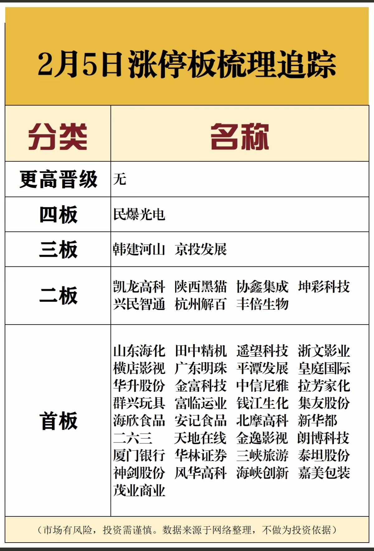 2.5周四涨停板股票:连板高度! 四连板民爆光电 三连板韩建河