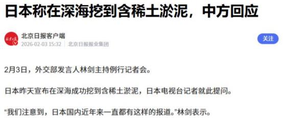 高市早苗高兴早了!好不容易挖到稀土,却被中国一句话戳破幻想 最近这两天,日本国内可是相当热闹,甚至有点嗨过头了。原因很简单,日本海洋研究开发机构宣布,他们的深海探测船 “地球号” 在南鸟岛附近 6000 米深的海底,成功采集到了含稀土的淤泥。 消息一出,日本媒体大肆炒作,不少政客跟着欢呼,说这是 “摆脱对华稀土依赖的里程碑”,明里暗里挤兑中国,意思是以后不用再看中国脸色了。 但这份喜悦没持续多久,中国外交部的一句回应,就戳破了这场精心营造的狂欢。在 2 月 3 日的例行记者会上,面对日媒提问,发言人只说了一句 “我们注意到,日本国内近年来一直都有这样的报道”。 没有激烈反驳,却字字千钧,直接点破了真相,这不是什么新突破,只是日本多年来反复炒作的旧闻,根本没有实质性进展。 其实日本早在 2011 年就发现了南鸟岛附近的深海稀土资源,当时宣称理论储量有 1600 万吨,够全球用数百年。可十多年过去,这些资源始终停留在纸面上,从未实现商业化开采。 这次 “地球号” 采集到的,也只是两桶样本淤泥,连真正的试验性开采都算不上,顶多是一次成本高得惊人的技术验证。 最核心的问题的是,挖得到淤泥,不代表能用上稀土,更不代表能赚钱。这次试采,日本投入了 164 亿日元,折合人民币约 7.8 亿元,耗时三周,最终只提取了约 70 公斤稀土原矿。折算下来,每公斤稀土的成本高达 11.9 万美元,是当前国际市场均价的 150 倍,比同期黄金价格还高。 这样的成本完全不具备商业竞争力。要知道,国际市场上每公斤稀土价格才 790 美元左右,日本花 150 倍的价钱去开采,明摆着是做亏本买卖。就算未来技术成熟,专家预估成本也会是中国陆地矿山的 5 到 10 倍,想靠这个赚钱根本不现实。 成本高企的背后,是难以克服的技术难题。6000 米深海的环境极端恶劣,水压高达 550 个大气压,相当于每平方厘米要承受数百公斤压力,普通设备根本扛不住。试采数据显示,关键设备每作业 6 小时,损耗率就接近 2%,密封圈等部件要频繁更换,根本没法连续稳定作业。 更麻烦的是,采集到的稀土是以淤泥形式存在,含水量超过 90%。按照日本的规划,就算试采 350 吨泥浆,最终也只能提炼出不到 700 公斤稀土氧化物,效率低得可怜。 而且把泥浆从 6000 米海底抽上来,需要长达 6 公里的扬泥管,这套设备特别脆弱,容易被洋流拖拽断裂,远程操控还存在信号延迟,任何小失误都可能导致整个系统瘫痪。 就算能把稀土原矿运上岸,日本还面临一个绕不开的坎 —— 精炼技术不行。稀土分离提纯需要上百个复杂步骤,全球 91% 的高纯度稀土精炼产能都集中在中国。 日本目前的技术,最多只能做到 99.99% 的纯度,可新能源汽车、半导体这些高端产业,需要的是 99.9999% 纯度的产品。这意味着,就算日本挖出了原矿,最终还是得运到中国精炼,所谓的 “摆脱对华依赖” 根本是自欺欺人。 更让人看不懂的是,日本明明财政状况紧张,却还要往这个无底洞里砸钱。根据日本政府公布的 2026 财年预算案,预算规模高达 122.3 万亿日元,其中仅偿还国债及利息的费用就有 31.3 万亿日元。日本政府债务余额占国内生产总值的比重已经达到 240%,只能靠新发国债弥补收支缺口。 现在日本民众面临工资连续 28 个月下跌、物价连续 50 多个月上涨的困境,2024 年大米价格甚至同比暴涨 98.4%,部分学校都被迫减少米饭供应次数。 高市早苗政府不去解决这些民生问题,反而把巨额资金投入到深海稀土这种不切实际的项目上,说白了就是想靠炒作 “资源自主” 的假象,转移民众注意力,为大选拉选票。 除此之外,这个项目还藏着环保和法律风险。环保组织警告,深海开采会扰动海底沉积物,形成扩散数十公里的 “泥浆羽流”,每平方公里可能导致 300 种深海物种灭绝,生态恢复需要上百年。 而且采泥地点的合法性也有争议,南鸟岛是无法维持人类长期居住的无人珊瑚礁,按照《联合国海洋法公约》,能不能主张专属经济区还不好说,未来可能面临国际诉讼。 中国之所以能如此从容回应,核心是因为掌控着全球稀土产业链的关键环节。从开采到精炼,再到深加工,中国拥有完整的产业体系和技术优势,这种优势不是靠一次样本采集就能撼动的。日本的高调炒作,反而凸显了其在资源供应上的被动局面,以及面对中国产业链优势时的无力感。 说到底,日本深海挖稀土根本不是什么 “翻盘利器”,而是一个不折不扣的财政大坑。高市早苗政府想靠这个炒作政绩、摆脱对华依赖,恐怕只能是竹篮打水一场空。这场狂欢终会过去,留下的只会是越来越重的财政负担和难以解决的现实难题。