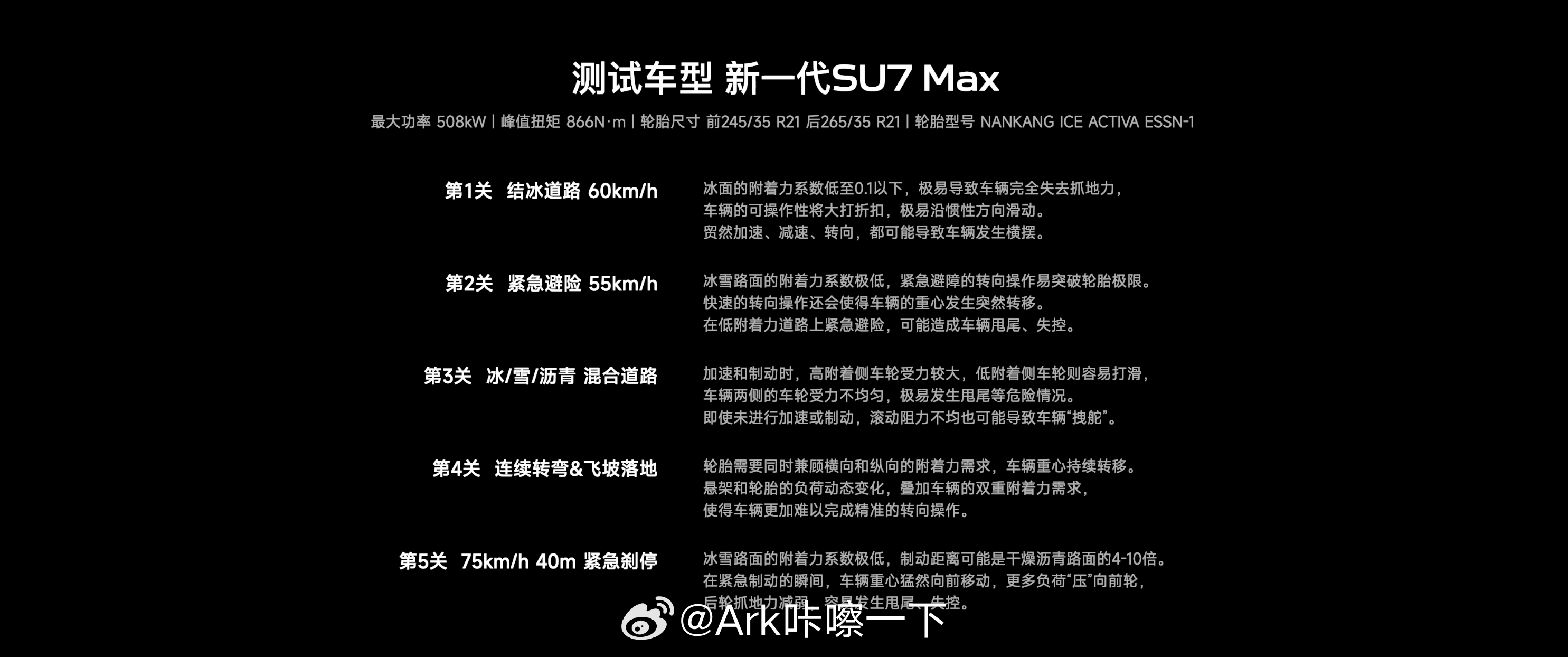 新一代小米SU7在操控上稳步提升,在安全上加大力度,在低附着力的冰雪路面测试连续过弯、紧急刹停、飞坡落地都表现优异,这已经算是比较极端的路况了,我们正常如果遇到这种情况也不会开到测试的速度,可见ESP标定还是很精细的。