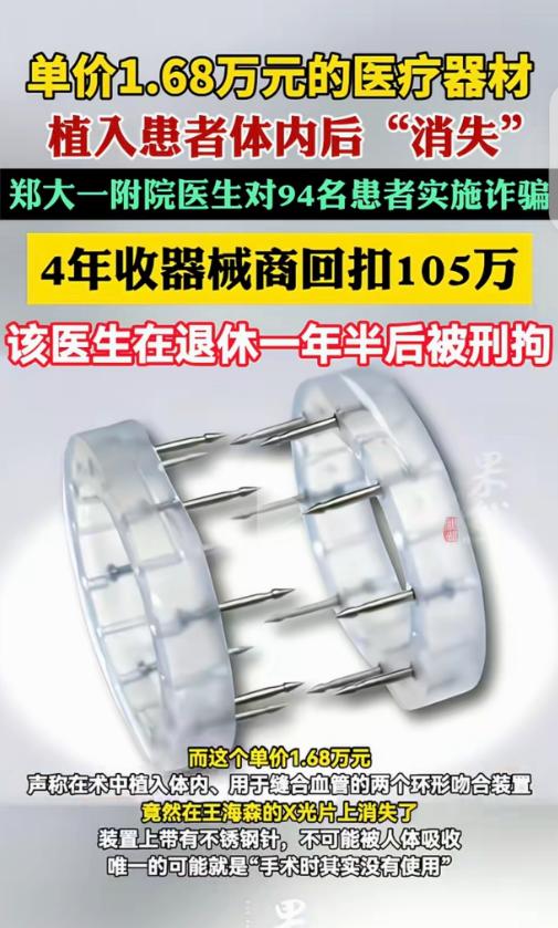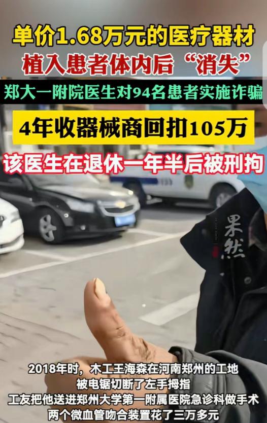 手指接回来了,钱也花了三万多,可拍片一看,医生说植入的器械,居然在身体里‘消失’了。这并不是医学奇迹,而是一桩在河南郑州被查实的医疗诈骗案件,其真相之残酷,远超患者最初的怀疑。 时间回到2018年。王先生在郑州从事木工工作,是家里的主要经济来源。一次工地作业中,他操作电锯时发生意外,左手拇指被当场锯断。对于一名靠手吃饭的工人来说,这不仅是一次严重外伤,更关系到今后是否还能继续工作、维持家庭生活。 事故发生后,王先生被紧急送往当地一家医院实施断指再植手术。手术过程顺利,术后医生明确告知其家属:为了保证血管通畅,在手术中为王先生植入了两枚“微血管吻合装置”,单价各1.68万元,合计三万余元。这种装置据称可以稳定血管连接,降低术后风险,不影响后续劳动功能。 在当时的情境下,王先生和家人并未对这一说法产生怀疑。一方面,伤情紧急,根本没有时间对医疗方案逐项核实;另一方面,医患之间本就存在明显的信息不对称,患者只能依赖医生的专业判断。王先生签字、缴费、手术,三万多元几乎掏空了他的积蓄,但他认为“只要手能保住,这钱值”。 术后几年,王先生恢复情况尚可,也重新回到了工地干活。直到后来因其他原因到医院复查,需要拍摄影像资料时,一个异常情况被发现:影像中,并未显示任何微血管吻合装置的痕迹。 这一结果让王先生产生了强烈疑问。根据产品说明,该装置内部含有不锈钢针,属于永久性植入物,不存在被人体吸收或自然消失的可能。换句话说,如果真的使用过,在影像中应当清晰可见。 王先生多方咨询后逐渐意识到,唯一合理的解释是:当年的手术中,医生并未实际使用这些器械,但费用却照单全收。2021年12月底,王先生选择报警。 警方介入调查后,案件迅速出现了令人震惊的走向。调查发现,涉案医生王某在2016年至2020年间,长期在手指外伤手术中虚构“植入微血管吻合装置”的医疗事实。警方调取病历、收费记录和供应商数据后确认,王某在多起手术中明知患者并不需要使用该装置,仍向患者收取高额费用。 最终查明,四年时间内,共有94名患者遭遇与王先生相同的情况。王某累计“使用”该类装置343个,却通过虚假植入、虚假收费的方式非法获利205万元。同时,他还从器械供应商处收受回扣105万元。案发时,王某已退休一年多,回家养老,直至2023年12月被依法控制。 在刑事定性上,法院认定王某的行为已明显超出一般医疗纠纷范畴。根据《刑法》第266条规定,诈骗公私财物,数额特别巨大或者有其他特别严重情节的,处十年以上有期徒刑或者无期徒刑,并处罚金或者没收财产。王某通过虚构医疗行为、隐瞒真实治疗情况,骗取患者钱款,符合诈骗罪的构成要件。 同时,王某利用职务便利,非法收受供应商回扣,侵害医疗机构管理秩序,其行为又符合受贿罪的构成要件。法院依法对其数罪并罚,判处有期徒刑十二年,并处罚金四十万元,违法所得依法追缴。 需要特别说明的是,刑事判决并不意味着患者权益的终点。对于94名患者而言,已经支付但并未实际使用的器械费用,依法属于不当得利或者诈骗所得,患者有权通过刑事追赃、附带民事诉讼或另行提起民事诉讼的方式主张返还。只要能够证明收费与实际治疗不符,举证责任并非完全落在患者一方。 这起案件之所以引发广泛关注,并不只是因为涉案金额巨大,更在于其精准利用了患者在紧急医疗情境下的弱势地位。断指、手术、生计压力,叠加在一起,使患者几乎不可能在当下对治疗方案逐条核验。这种信任一旦被滥用,破坏的不只是个人权益,更是整个医疗秩序的公信基础。 从监管角度看,案件也暴露出医疗耗材使用、收费与术中记录之间的监督漏洞。直到患者通过影像检查自行发现异常,问题才浮出水面,这本身就具有强烈的警示意义。 法律最终给出了明确回应:医疗专业不是牟利的遮羞布,患者的信任也不是可以反复透支的资源。当白大褂背后藏着算计,再高明的手术,也掩盖不了账目和影像留下的痕迹。