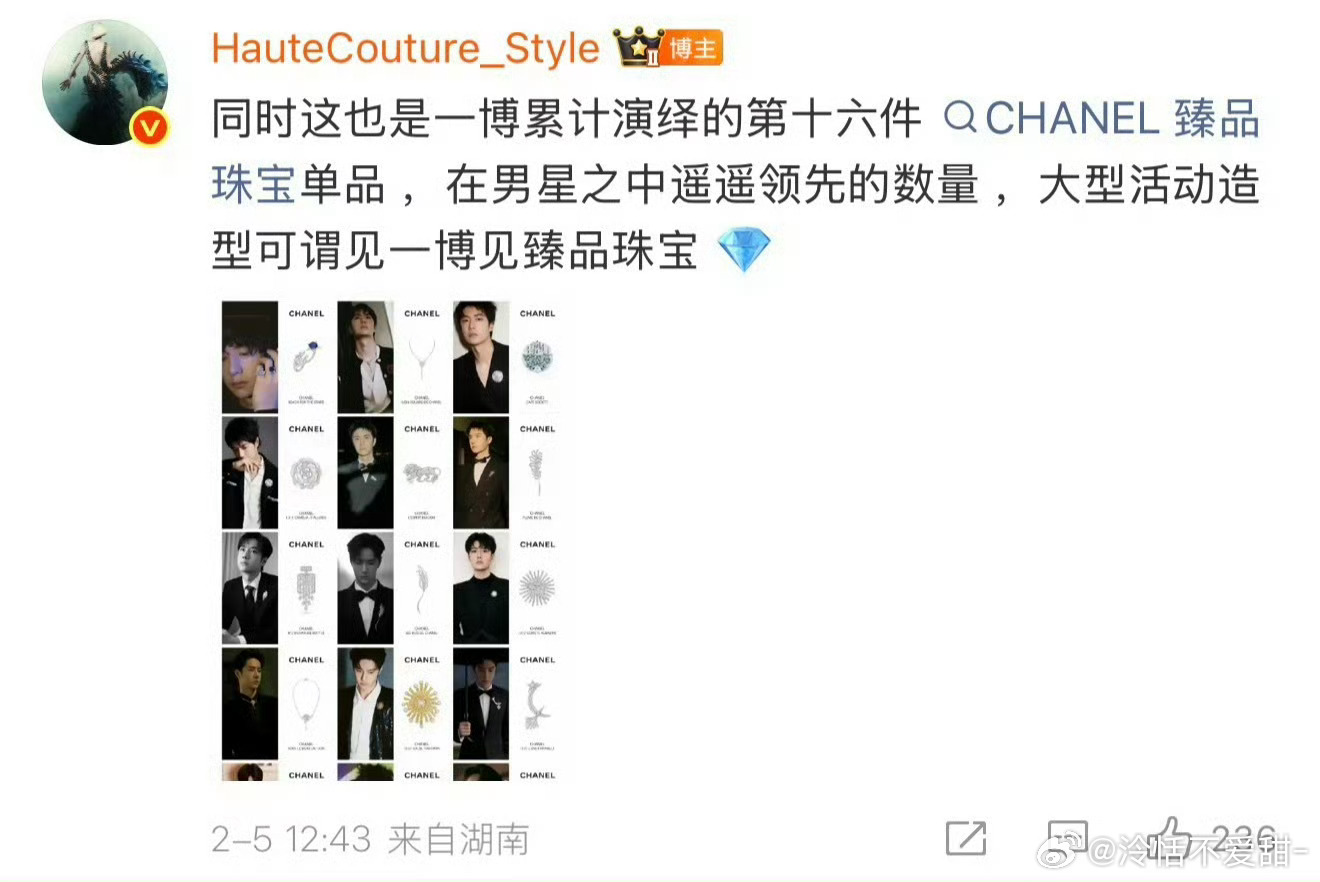卧槽好爽!在正式晚会开始前 香奈儿先给王一博颁奖礼啊啊啊啊啊 而且还是第十六件香奈儿臻品珠宝!!!谁看了不说一句香奈儿宠王一博王一博 大明星回内娱王一博四宫格出图