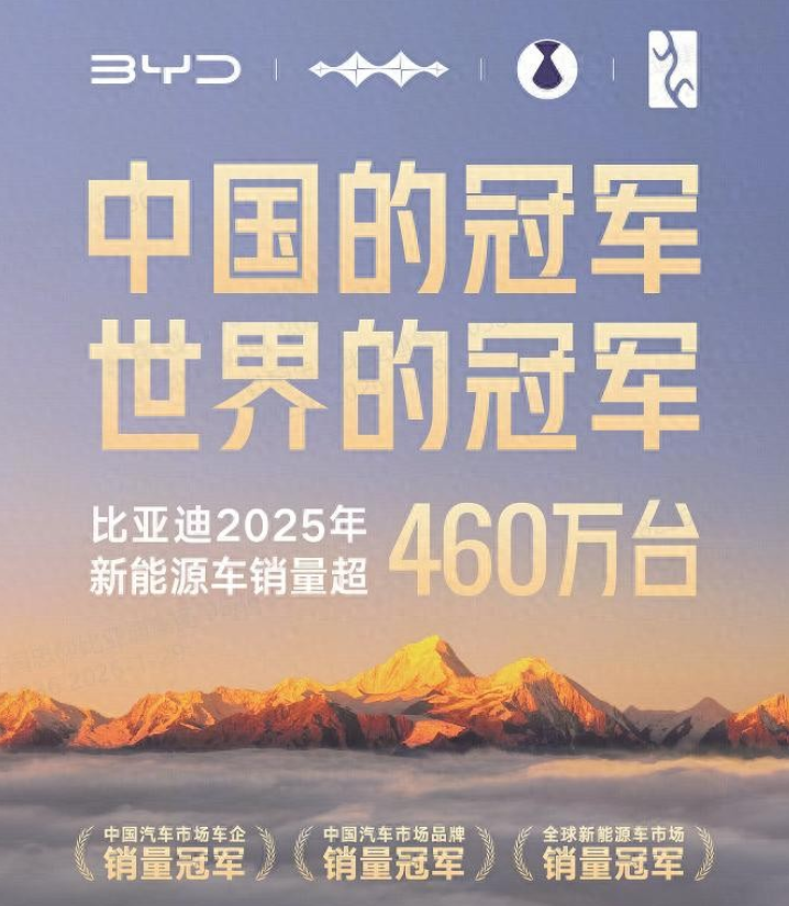 比亚迪 1 月销量超 21 万辆,稳坐新能源汽车销冠,与主要竞品拉开明显差距。自 2021 年 6 月起,比亚迪已连续 56 个月蝉联国内新能源销冠,累计销量突破 1530 万辆,展现出强大的技术与产品综合实力。当前市场竞争重心转向品牌与全球化,比亚迪 1 月海外销量超 10 万辆,同比增长 43.4%,在欧洲多国表现突出。2025 年,比亚迪以 460 万年销量拿下 “三冠王”,并首次跻身全球车企销量前五。开年强势领跑,为全年行业竞争定下基调。