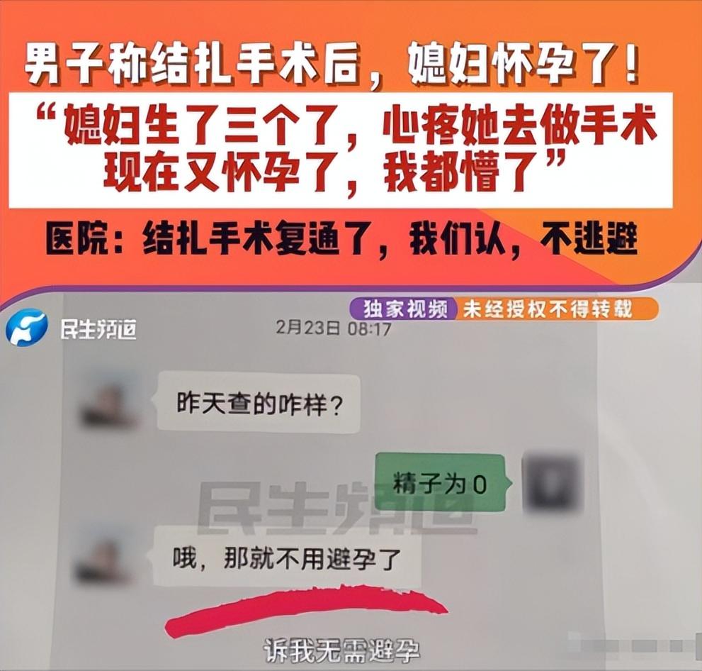 河南郑州,男子和妻子生了3个孩子后,不想再要了,他怕妻子遭罪,就主动去做了结扎,术后一个月,医生说不用再做措施,哪想到结扎半年后,妻子竟又怀上了!男子一查发现,精子竟又正常了,他气得找医院讨说法,医生一句话把他噎住了…… 河南郑州一名男子的遭遇,近期引发全网热议。为了不让妻子再承受生育之苦,他在和妻子生下3个孩子后,主动去做了结扎手术, 术后医生明确告知无需再做避孕措施,可谁能想到,仅仅半年时间,妻子竟再次怀孕,男子复查后发现自己精子恢复正常,怒找医院讨说法,却被医生一句话噎得说不出话。 郑州这名男子和妻子婚后感情和睦,先后生下3个孩子,一家五口的日子过得平淡又热闹。看着妻子三次怀孕、分娩的辛苦, 男子心疼不已,考虑到家里孩子已经够多,也不想再让妻子遭罪,他主动提出去做结扎手术,承担起避孕的责任,这份担当,起初还被身边不少人称赞。 随后,男子挑选了一家医院,顺利完成了输精管结扎手术。据悉,男性结扎手术是切断输精管,阻止精子输送,从而达到绝育目的,手术本身不算复杂,对性功能也没有影响,是不少家庭的避孕选择之一,但存在极少数失败的可能。 术后一个月,男子按照医生的要求前往医院复查,检查结果显示精液中已无精子,医生告知他,后续无需再采取任何避孕措施,可以放心生活。男子悬着的心彻底放下,想着自己终于能帮妻子省去避孕的麻烦,也不用再担心妻子意外怀孕受苦。 接下来的几个月,夫妻俩一直按照医生的叮嘱,没有采取额外的避孕措施。可就在结扎手术半年后,妻子突然出现了恶心、嗜睡等症状,两人心里咯噔一下,连忙去医院检查,检查结果让他们彻底懵了——妻子竟然怀孕了。 男子又惊又气,连忙自己也做了精液检查,更让他崩溃的是,自己的精子竟然恢复了正常,活力和数量都达标,这也就意味着,之前的结扎手术相当于白做了。 一想到自己遭了罪,还让妻子面临再次生育的辛苦,男子当即带着检查报告,怒气冲冲地赶往医院讨说法。 面对男子的质问,医院工作人员起初耐心接待,查看了他的手术记录和复查报告。可当男子要求医院给出说法、承担责任时, 医生的一句话直接把他噎住了——结扎手术存在自发性复通的概率,属于手术正常风险,术前已经告知过相关事宜,医院不承担额外责任。 男子对此无法接受,他表示自己术前并未清楚知晓这种风险,而且术后复查显示无精子,谁也没想到会出现复通的情况。 双方各执一词,争执不下,男子始终认为是医院手术不当导致的,而医院则坚持称是正常风险,愿意出面调解,却拒绝承担赔偿责任。 事件曝光后,全网瞬间炸开了锅,网友们看法不一。有网友共情男子,直言“太憋屈了,为了护妻遭罪做手术,结果白挨一刀,还让妻子再受苦”“医院就算提前告知,这种低概率风险也该重点强调,不能事后一句正常风险就打发人”。 也有网友理性表示,结扎手术确实存在复通的可能,属于医学上无法完全规避的风险,河南省卫生健康委员会也曾明确过,输精管绝育术有极少数失败病例,可能是复通、手术失误等原因导致。 据悉,男性结扎后复通的情况虽不常见,但并非个例,可能是输精管切断长度不足、扎线松紧不当,或是形成精子肉芽肿导致两端沟通等原因造成,术后即便复查无精子,也存在后续复通的可能,只是概率极低。 目前,男子仍在和医院协商此事,尚未达成一致,而妻子腹中的孩子,夫妻俩也在慎重考虑是否留下。一场原本为了护妻的手术,最终变成了烦心事,其中的委屈与无奈,只有当事人最清楚。 对此,你们有什么看法,欢迎评论留言~