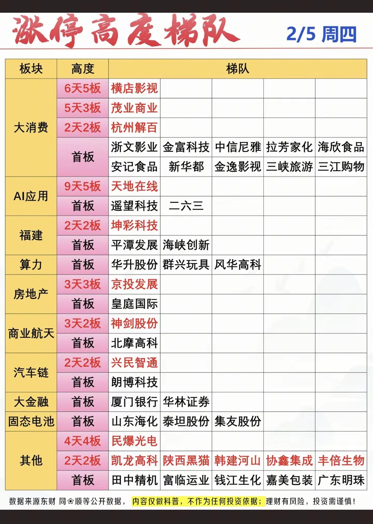 2.5周四 涨停板股票:连板高度! 四连板 民爆光电 三连板 韩建河山 京投发展 涨停板44家,跌停15家 涨跌比1618:3719 焦点:消费零售,化工、煤炭