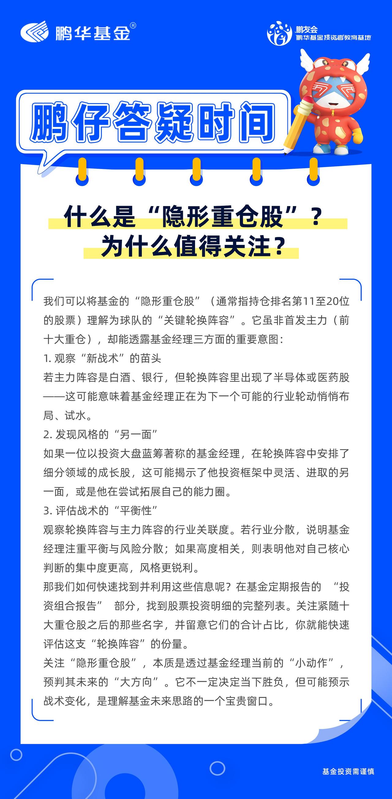 上期我们学会了快速阅读基金报告最核心的3部分。今天,我们来深入挖掘一个容易被忽略、却充满“宝藏”的信息点——基金的“隐形重仓股”。你可能对基金的“十大重仓股”如数家珍,但你知道 “第11至第20名” 的重仓股同样重要吗?它们在定期报告里不单独列出明细,但汇总起来,往往能透露出基金经理更真实、更前瞻的布局意图。本期