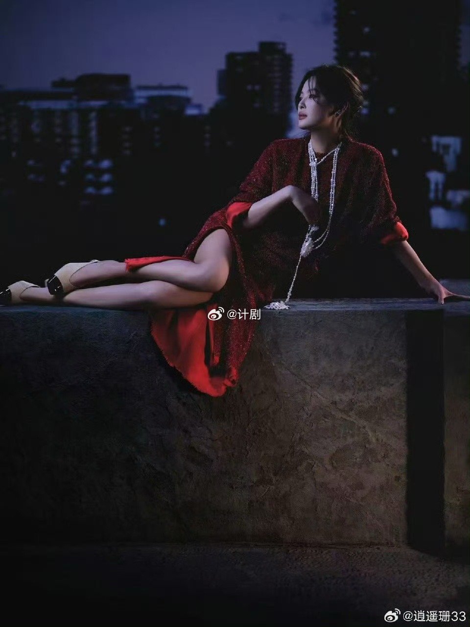 辛芷蕾高开叉红裙 珍珠项链配红裙这个组合太妙了!辛芷蕾走起来时珍珠轻轻摇曳,整个人美得像从画里走出来一样。