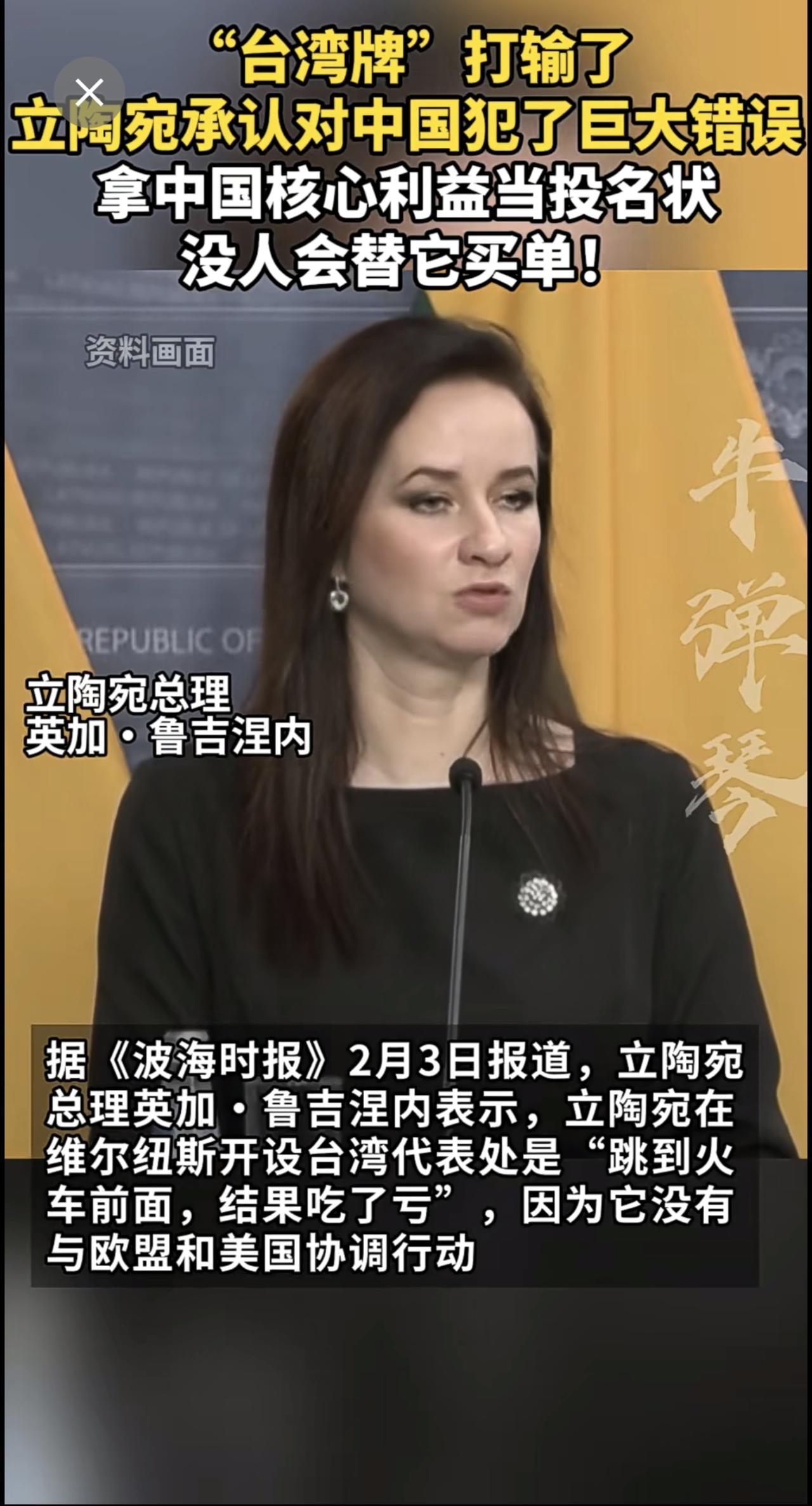 “台湾牌”打输了,立陶宛承认对中国犯了巨大错误,拿中国核心利益当投名状,没人会替