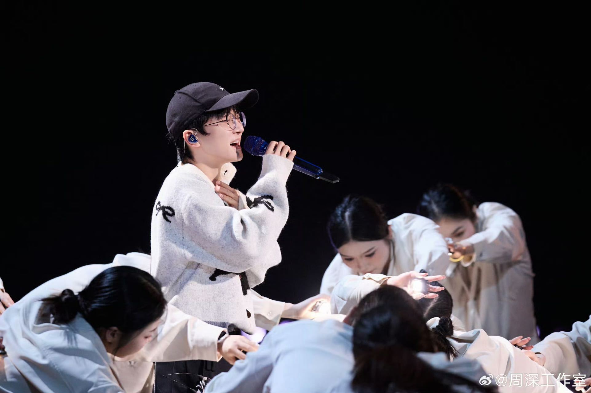 周深你的外套好吵 软乎乎毛绒外套加持,周深彩排模样憨态可掬,简约造型衬得清新气质更出众