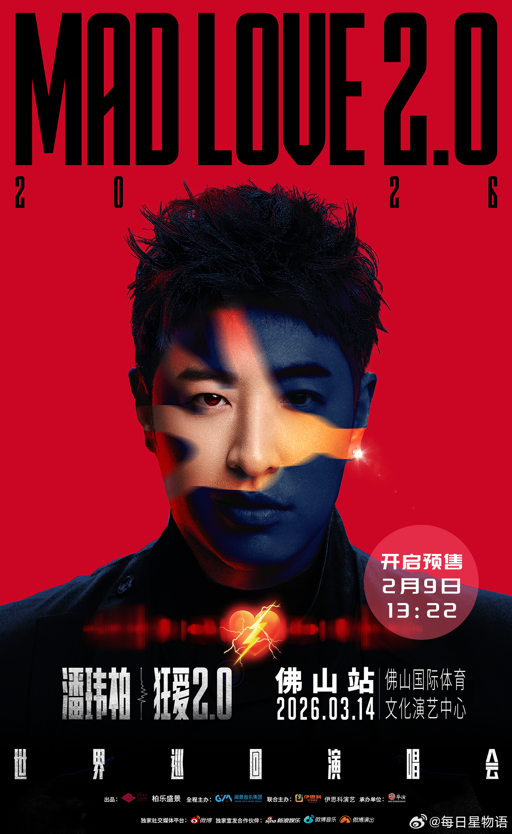 潘玮柏巡演佛山厦门双城预售 狂爱2.0佛山厦门预售倒计时,舞台科技感拉满,全程嗨到脚不沾地,刻进骨子里的旋律大合唱,3月赴一场和青春的双向奔赴!潘玮柏狂爱2.0巡回演唱会