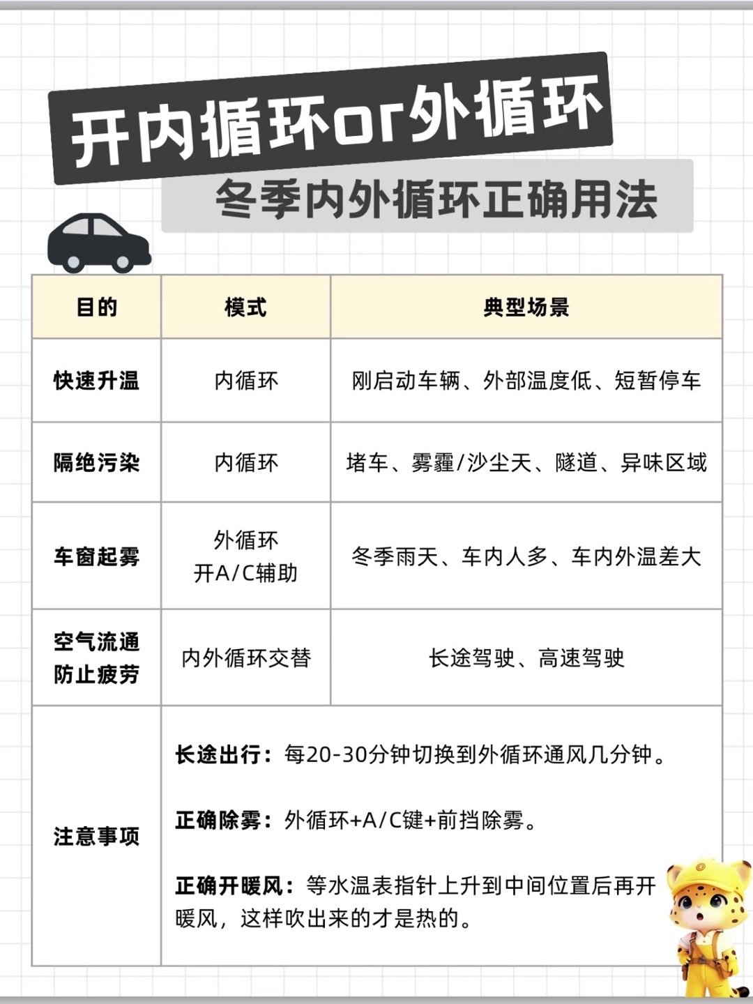 我不允许还有人不知道🔥内外循环怎么用!主要记住这3点:1、开暖风用内循环可快速
