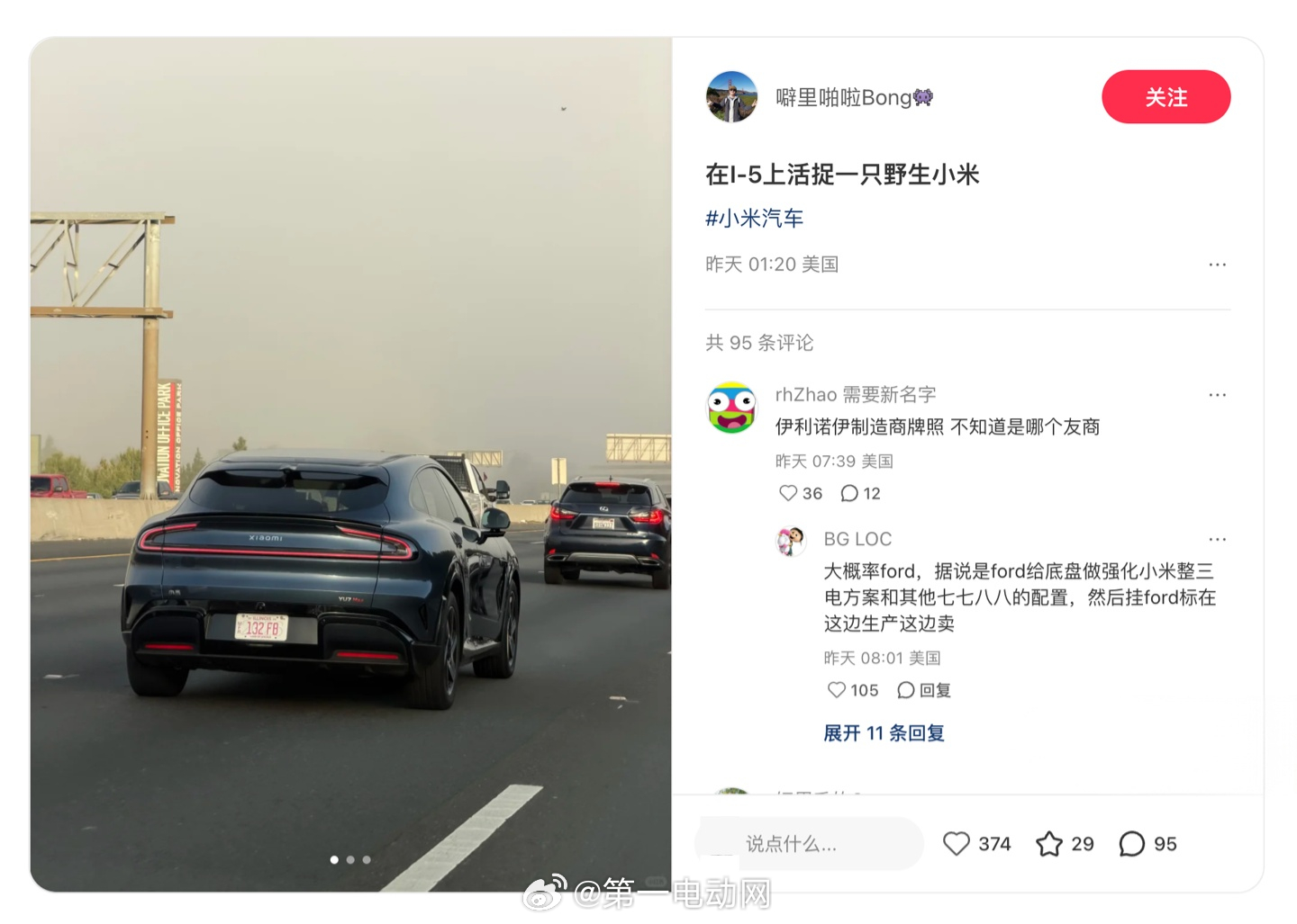 一辆小米YU7Max 在美国I-5州际公路上被发现,悬挂伊利诺伊州制造商车牌。该照片最初在小红书平台上流传,作为Rivian测试车,Rivian首席执行官RJ·斯卡林奇已确认,公司确实采购并使用多款中国汽车用于内部测试和竞争分析。在此背景下,小米YU7Max现身美国更像是一种低调而常规的产品研究行为