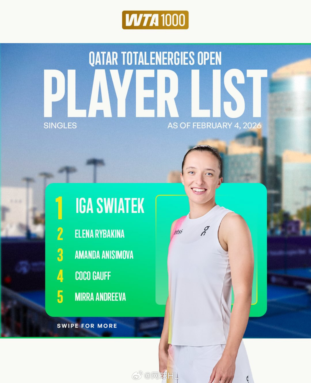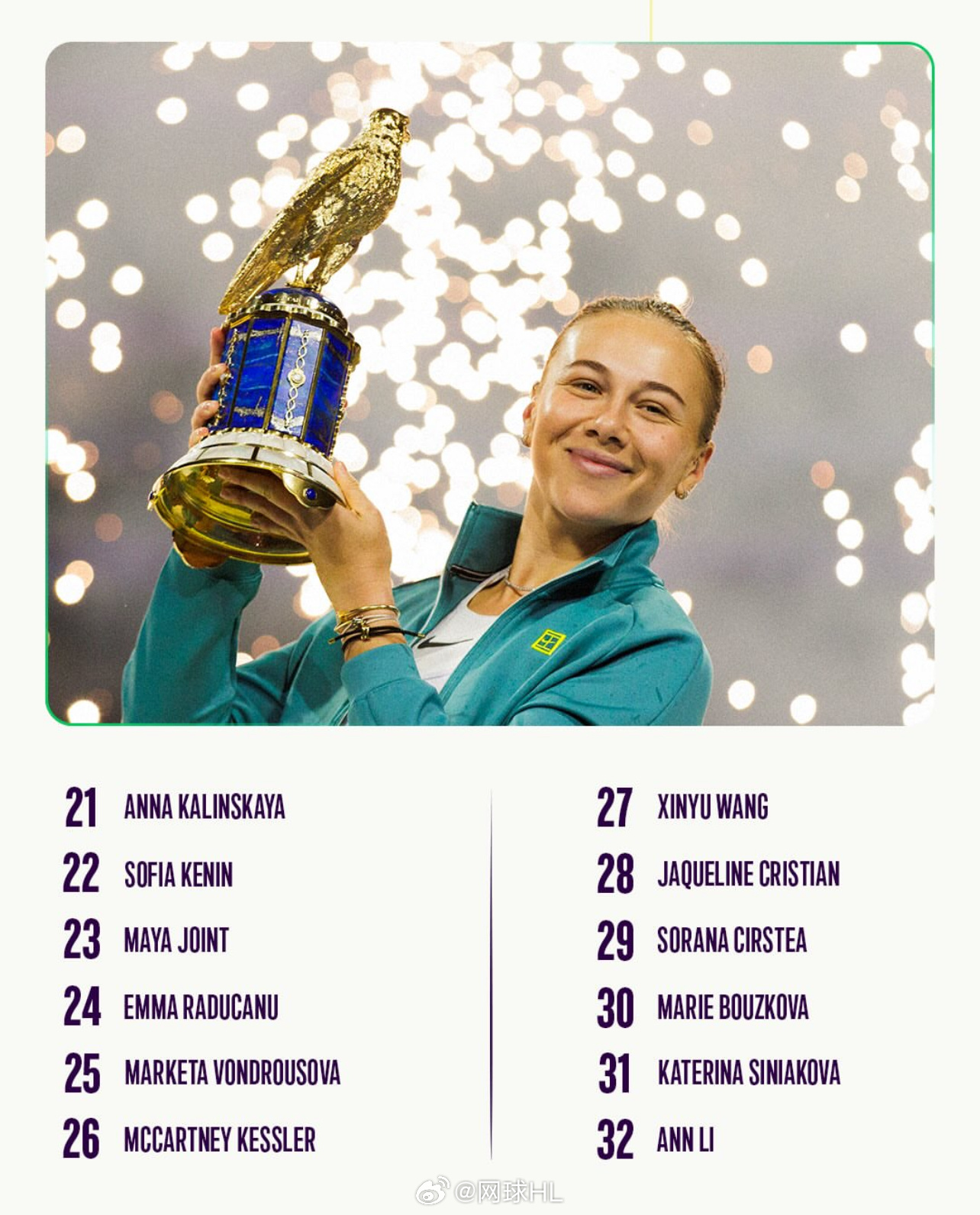 📅 正赛时间:2.8-2.14🏆 卫冕冠军:阿尼西莫娃⚠️ 萨巴伦卡退赛,斯瓦泰克为头号种子 郑钦文尚在名单当中