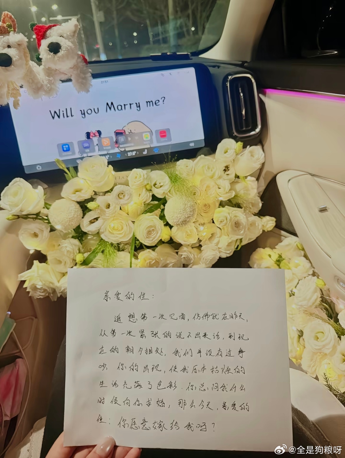 男朋友在铺满花花的副驾驶里向我求婚了