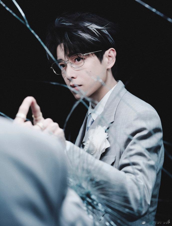 彭昱畅金丝眼镜 这一身真的越品越有味道!灰色西装+金丝眼镜斯文雅致,挑染彰显态度,白玫瑰浪漫加分,太对味儿