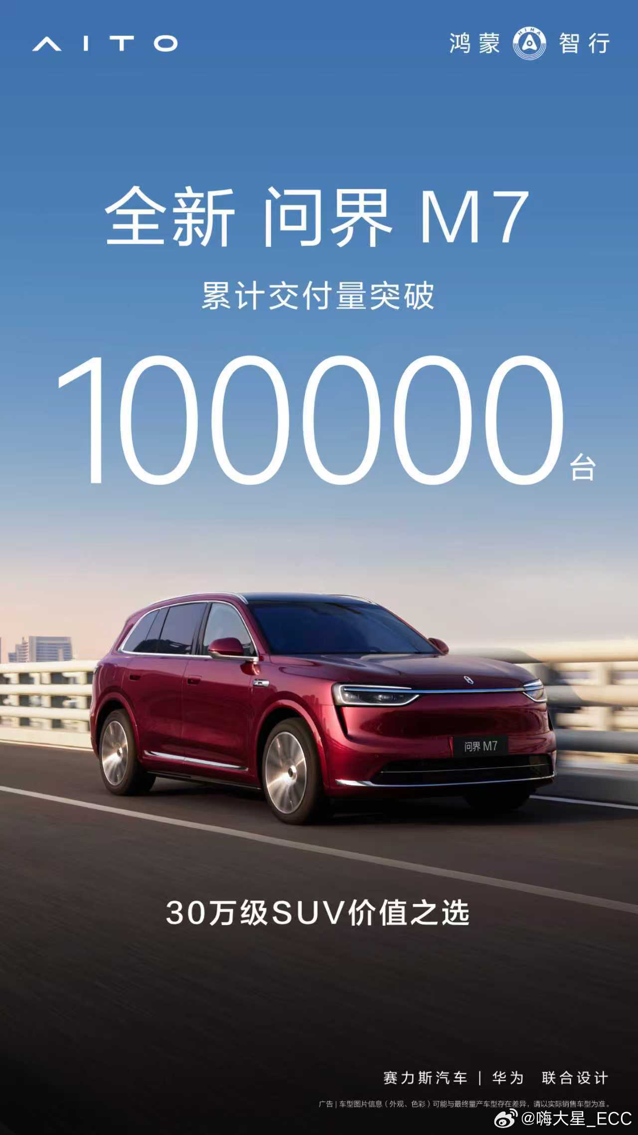 全新问界M7 用时133天,累计交付突破10万台。开交付之后,销量一路飙升,月销