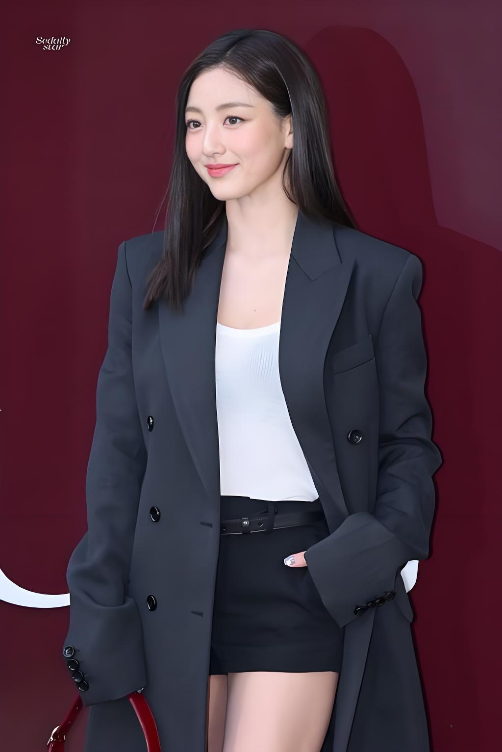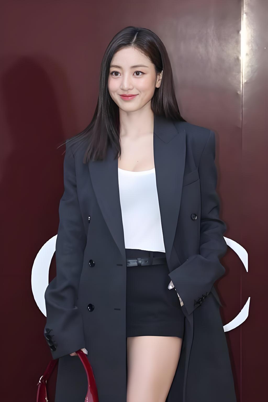 邝玲玲的黑色条纹西装简直太绝了!在网上看到她穿这西装的画面,瞬间就被吸引。她本就