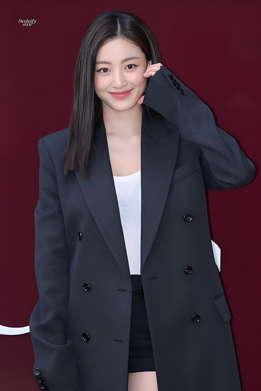 王小亿搭配黑色条纹西装,红唇魅惑,时尚女郎的魅力瞬间。