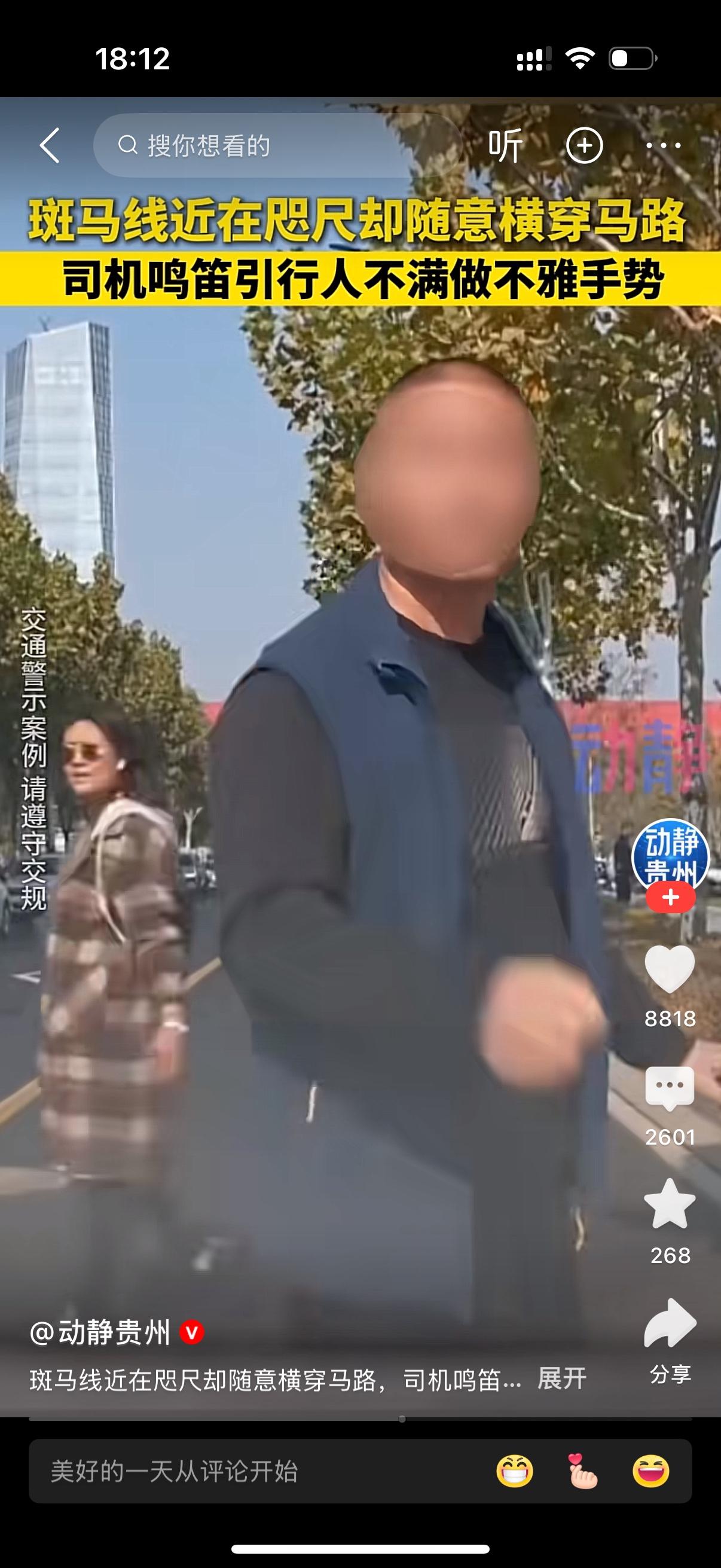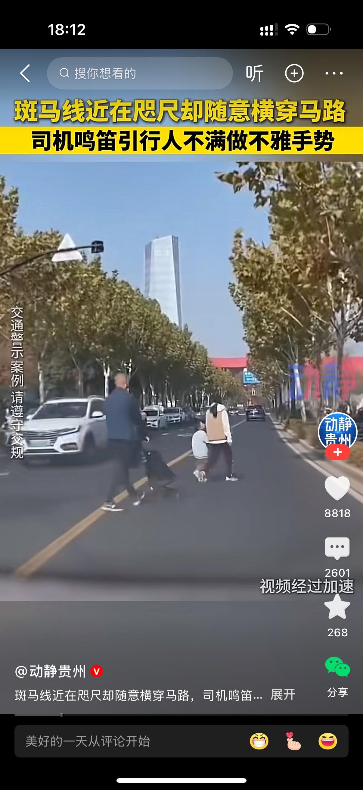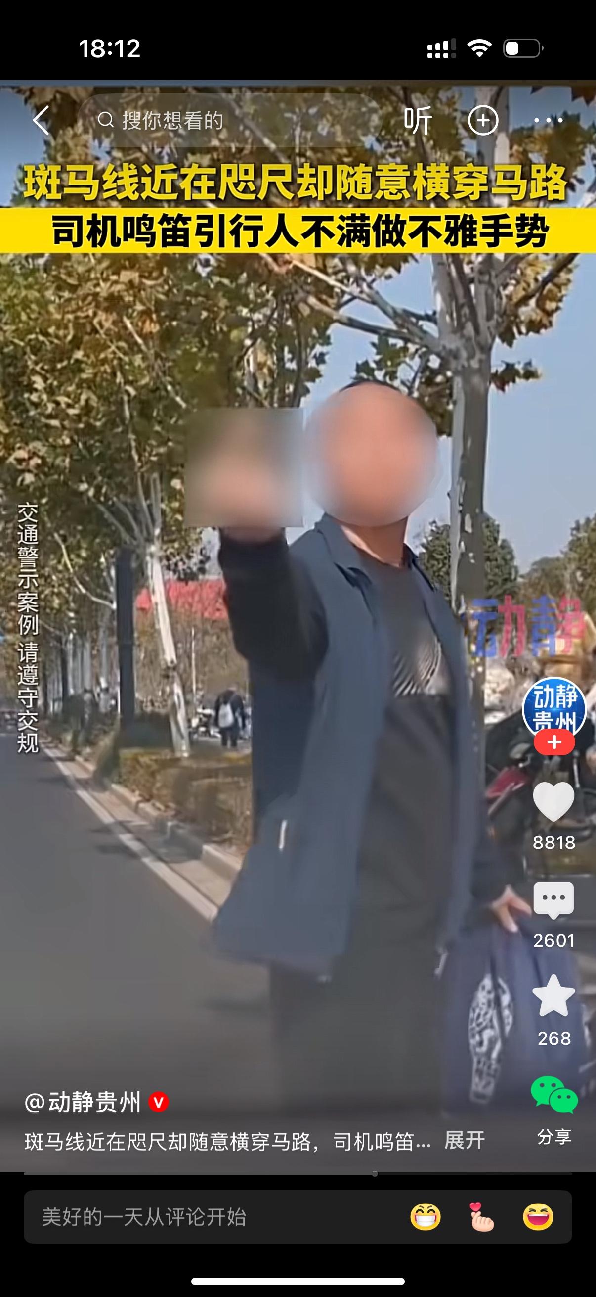家人们咱就说,真的能被这种人气到!斑马线明明就在跟前没几步路,这男的非得带着一家三口人,直接横穿马路,连多走两步都嫌费劲,交规在他眼里跟不存在一样。 司机看他们横穿太危险,就鸣笛提醒了一下,结果这男的立马不乐意了,脸色瞬间拉下来,直接对着司机竖中指挑衅,那态度要多嚣张有多嚣张,好像别人提醒他还是错的了。 自己不守规矩拿生命开玩笑就算了,还带着家人一起违规,被提醒了不但不惭愧,反而用这么粗鄙的动作怼人,这素质真的低到地底下去了。马路不是他家客厅,想怎么走就怎么走,对自己不负责,对司机不尊重,还当着家人的面做这种坏榜样,真的太丢人了! 这种没素质又无视规则的行人,真该好好长长记性,别等真出了事才后悔,到时候啥都晚了!