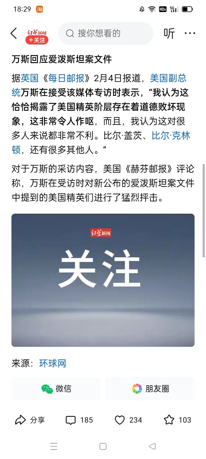 万斯谴责道德败坏的美国精英 卢麟元提醒我们奋勇前进 *头条网友52赫兹实验室惊叹说‘资本主义是真吃人还吃真人’! 学者卢麟元也说‘萝莉岛吃人案件几乎是真实存在的’,并且激励我们应该做好准备面对穷凶极恶的(对手甚至敌人)‘斩妖除魔’,捍卫正义! *而英国《每日邮报》消息说:美国副总统万斯对爱波斯坦案件评论说‘这个案子揭露了美国精英中存在着道德败坏的现象,其行为简直令人作呕!’