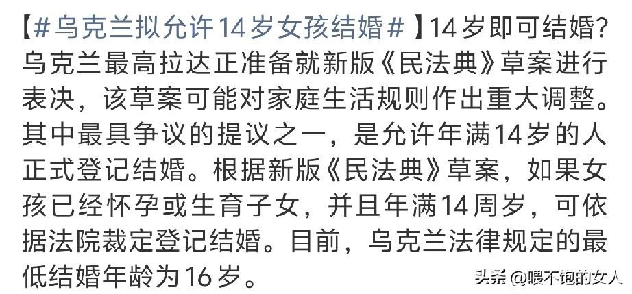 吓一跳! 乌克兰🇺🇦14岁女孩就能结婚了?[捂脸] 这个年龄还是初中生啊,初中就能生孩子了?
