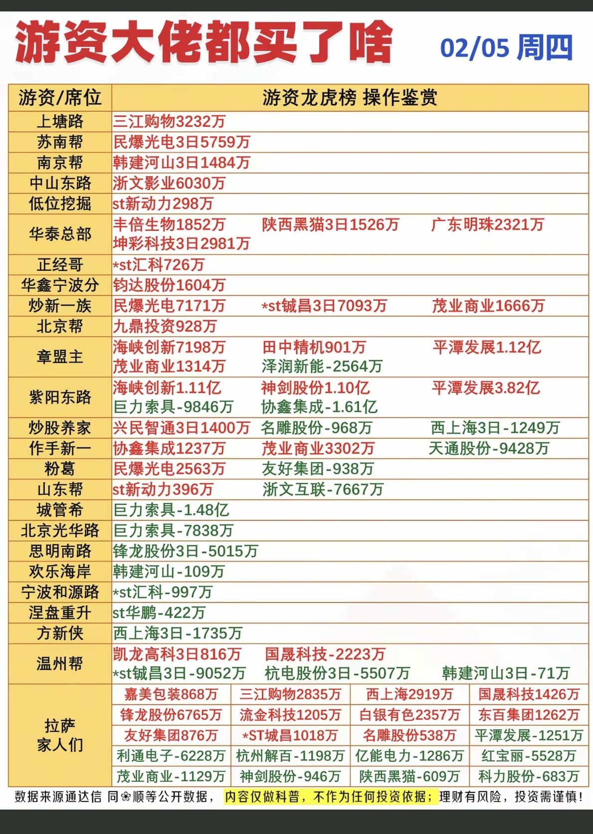 2.5周四 游资抢筹 龙虎榜! 游资抢筹焦点: 商业零售、食品饮料、煤炭化工、并购重组、新零售、网红经济、并购重组、 茂业商业、ST新动力获得多家游资共同抢筹。