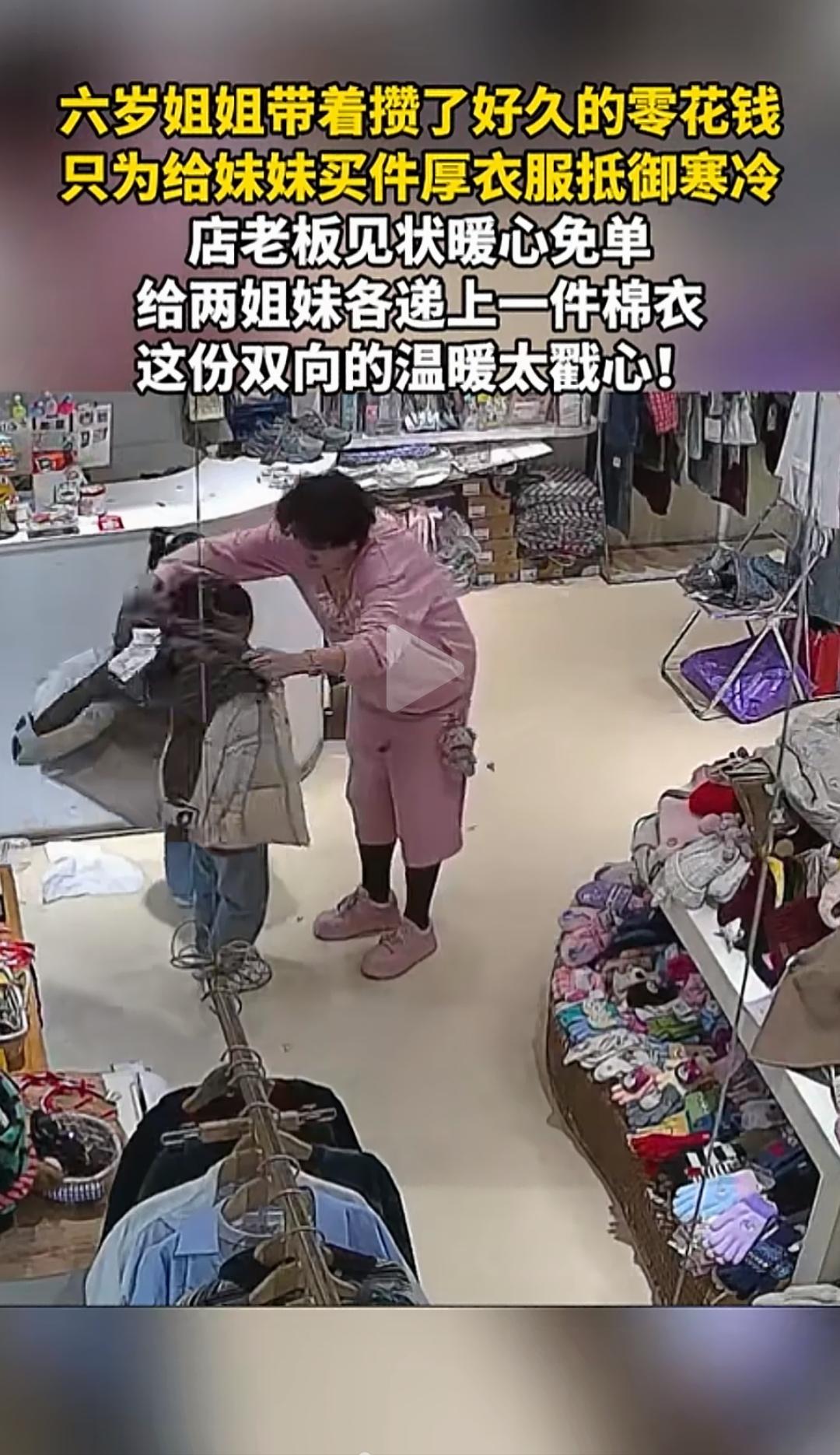 六岁姐姐带着攒了好久的零花钱,只为给妹妹买件厚衣服抵御寒冷,店老板见状暖心免单,给两姐妹各递上一件棉衣,这份双向的温暖太戳心! 雪还没停,寒风像刀,路灯下两姐妹的影子被拉得长长的。店老板把两件棉衣放在柜台上,笑意藏在眼角:“给你们的。”六岁姐姐腮颊发热地点点头,妹妹挽着姐姐的手,把棉衣裹紧,眼中全是对冬天的斗志和彼此的信任。 这短短一幕像一颗火星,点亮了路人的心。有人回头微笑,有人加快步伐,仿佛也被这份温暖拉进了共同的节日。路边的小孩把雪扔得开心,老人对着两姐妹点头致意,仿佛在说这座城市多了一份温柔的记忆。 更打动人的是,这并非孤立事件。它折射出社会的底色:温柔其实很强大,远胜过算计的冷漠。孩子的无私,大人也能在日常里学会放慢脚步,愿意多付出一点点。温暖不是一瞬的轰轰烈烈,而是口袋里那份小小的善意,一次次传递,久而久之,便成了社区的共同底线。 如果你也有类似经历,欢迎在评论区分享。你身边最容易被忽略的善意是什么?你愿意在这个冬天做哪一件小事来传递温暖?让我们把故事继续传下去,让这座城市的冬天不再寒冷。小女孩棉衣