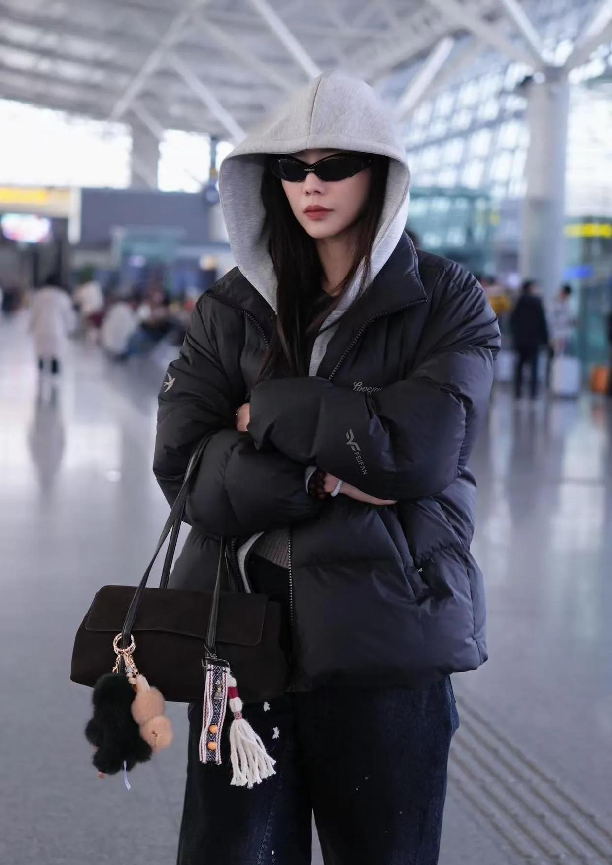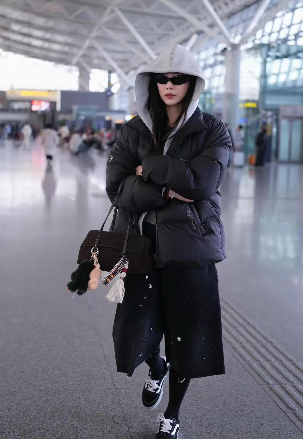 王霏霏把机场走成秀场了✈️ 黑色羽绒服叠穿灰色连帽卫衣,下身搭七分阔腿裤和帆布鞋,保暖又时髦,松弛感直接拉满! 姐姐这混搭思路,直接把冬天穿得又酷又减龄,这才是普通人能抄的穿搭模板! 王霏霏 王霏霏穿搭 机场穿搭 秋冬穿搭 羽绒服穿搭
