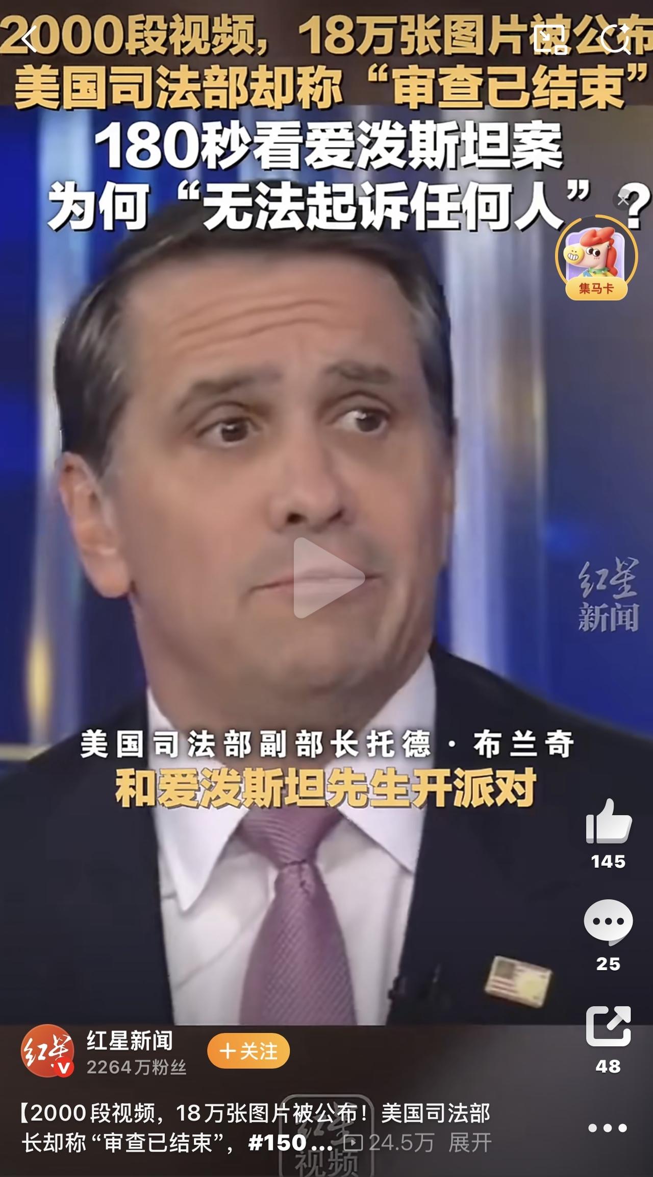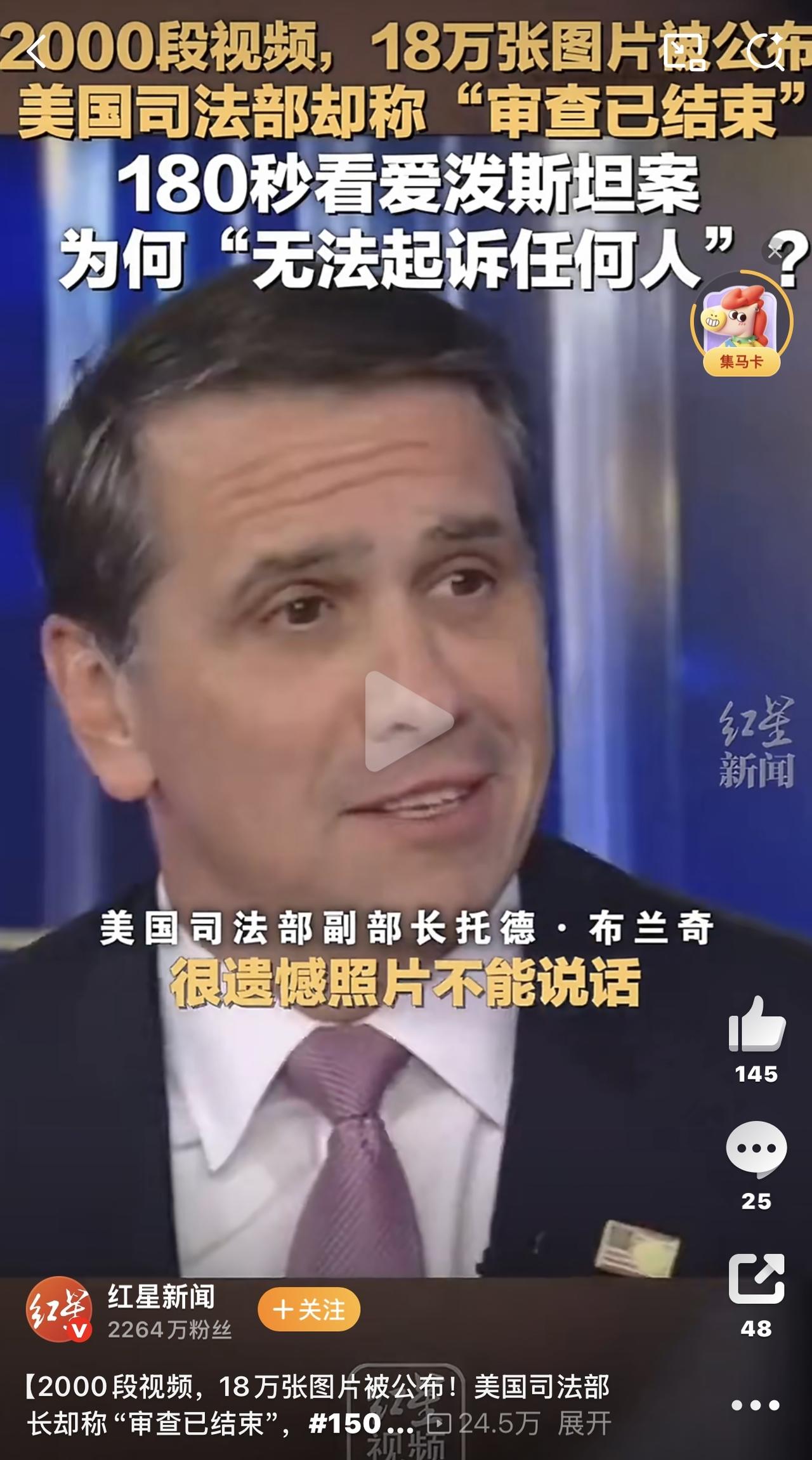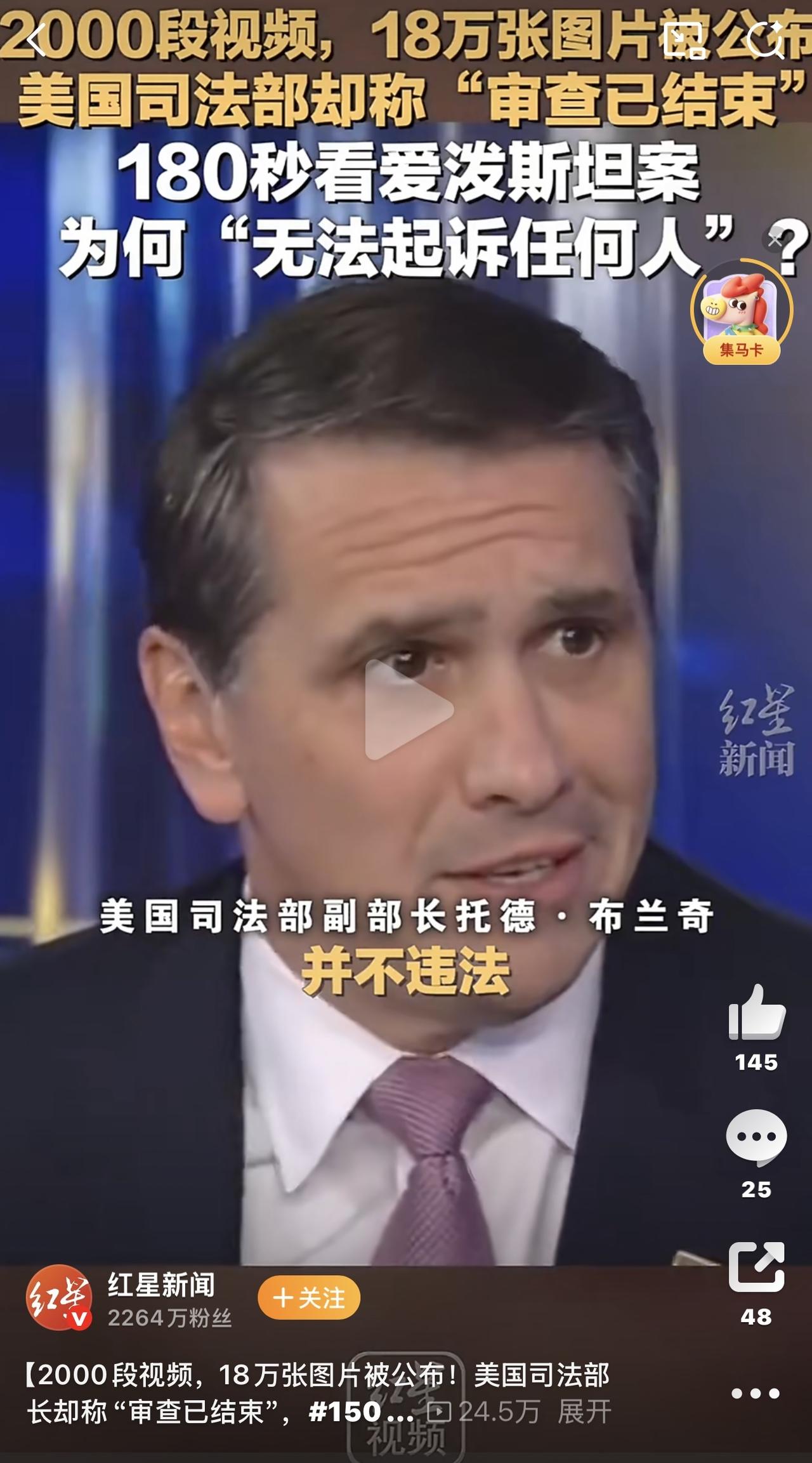 爱泼斯坦案卷真正恐怖的是,这么多证据,视频,照片,搞了这么多年后,竟然没有一个人被起诉:真真正正的刑不上“权贵”! 有照片,有视频,有300万张材料,2000段视频,18万张图片,摞起来有两个埃菲尔铁塔那么高的证据。 直接牵连现今总统,数位前总统,无数高官富豪权贵,甚至还有王室。 硬是闹得全世界全网络沸沸扬扬。 然后你说怎么?美国司法部副部长说,照片不会说话,审查已结束,无法起诉任何人。 也就是说,“和爱泼斯坦开派对并不违法”,根本不会有任何人被起诉。 目前,除爱泼斯坦本人一死了之外,只有他的一个前女友,吉丝蕾恩·马克斯韦尔,因为关联罪行被起诉。 并被定罪获刑20年,已经在服刑。 而爱泼斯坦的离奇死亡,文件解密,只不过是为了服务于美国大选,成为两他们互撕的利器。 而最早发声、最具代表性的受害者之一, 弗吉尼亚·朱弗雷,又是离奇死于2025年4月,关键证人消失,加大了案件调查难度。 西方国家一碰到这种事情,关键人物,往往以非正常方式消失,这就是,冤有头债有主,干掉所有起诉者,当然就没人追责。 这也是为什么,我们不能倒下,要不然人类就没希望了。